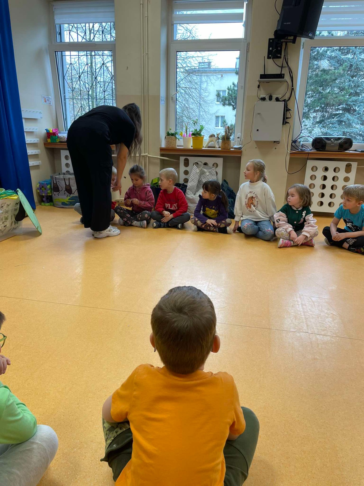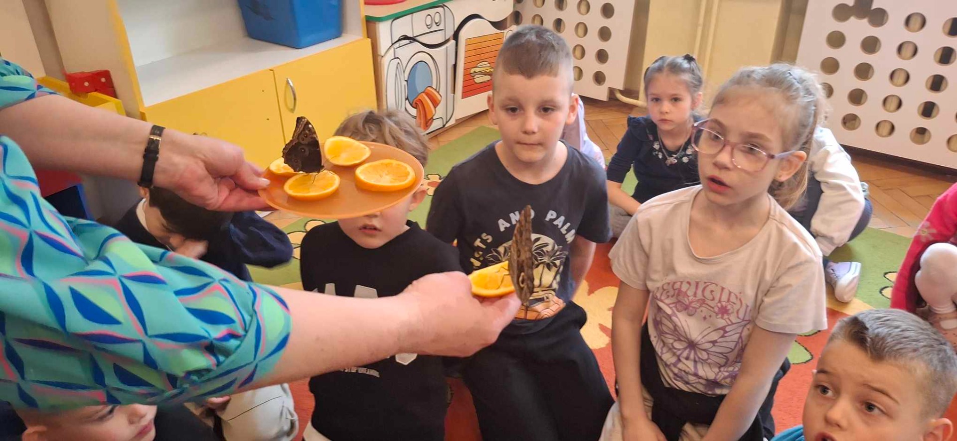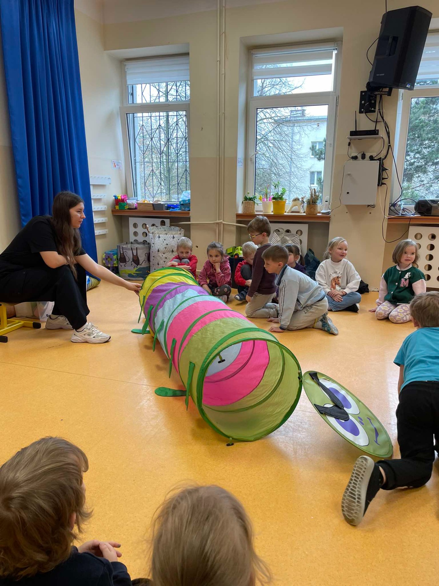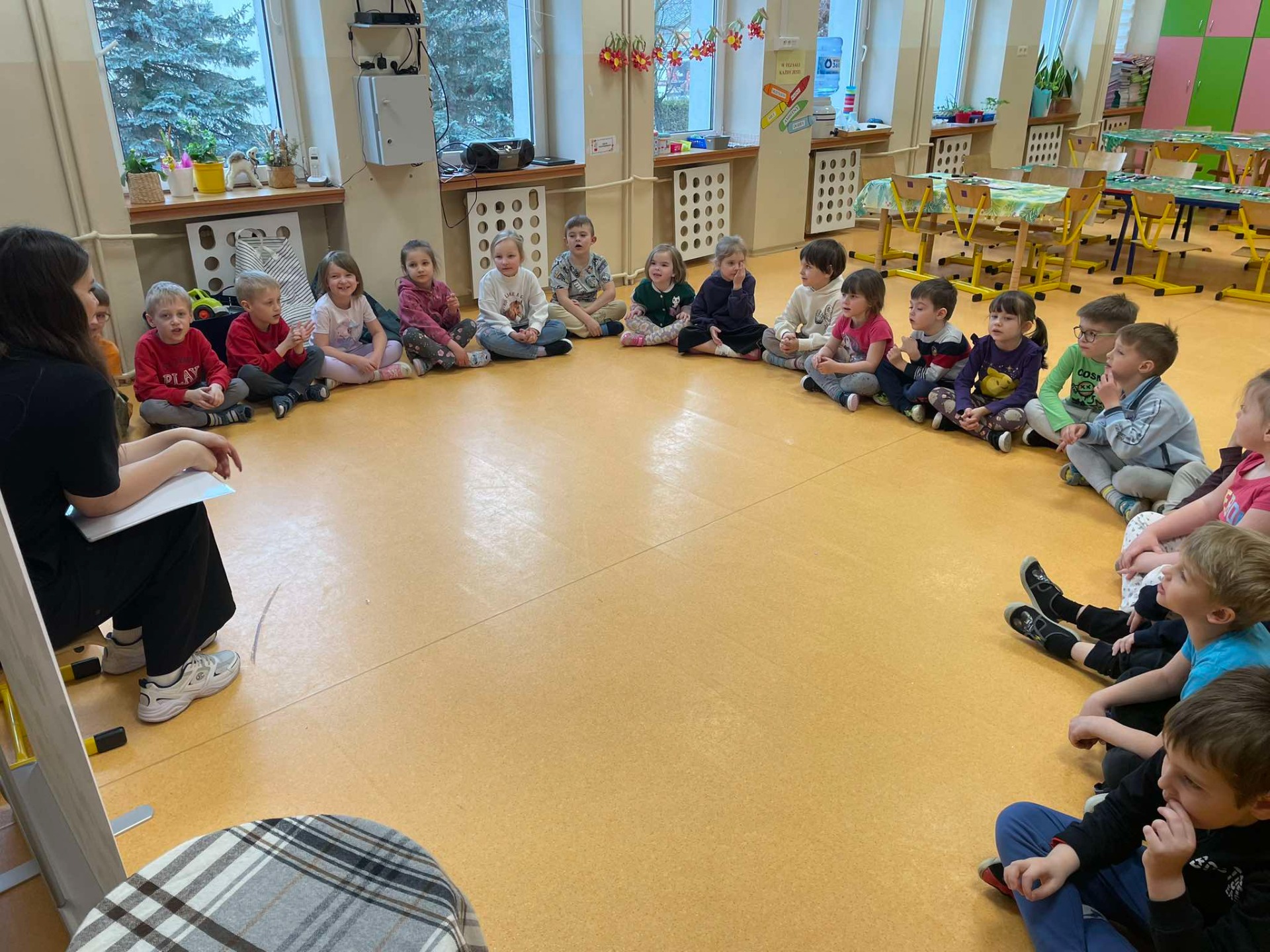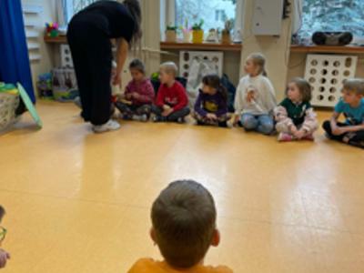 9.04.2025Dziś wszystkie przedszkolaki zebrały się w jednej sali, by obejrzeć zapowiedziane wcześniej przedstawienie „Król...