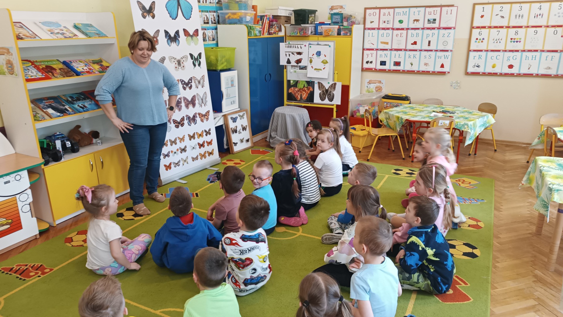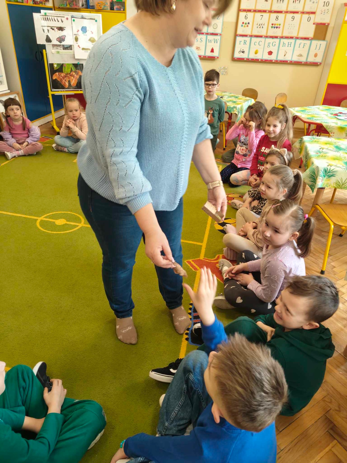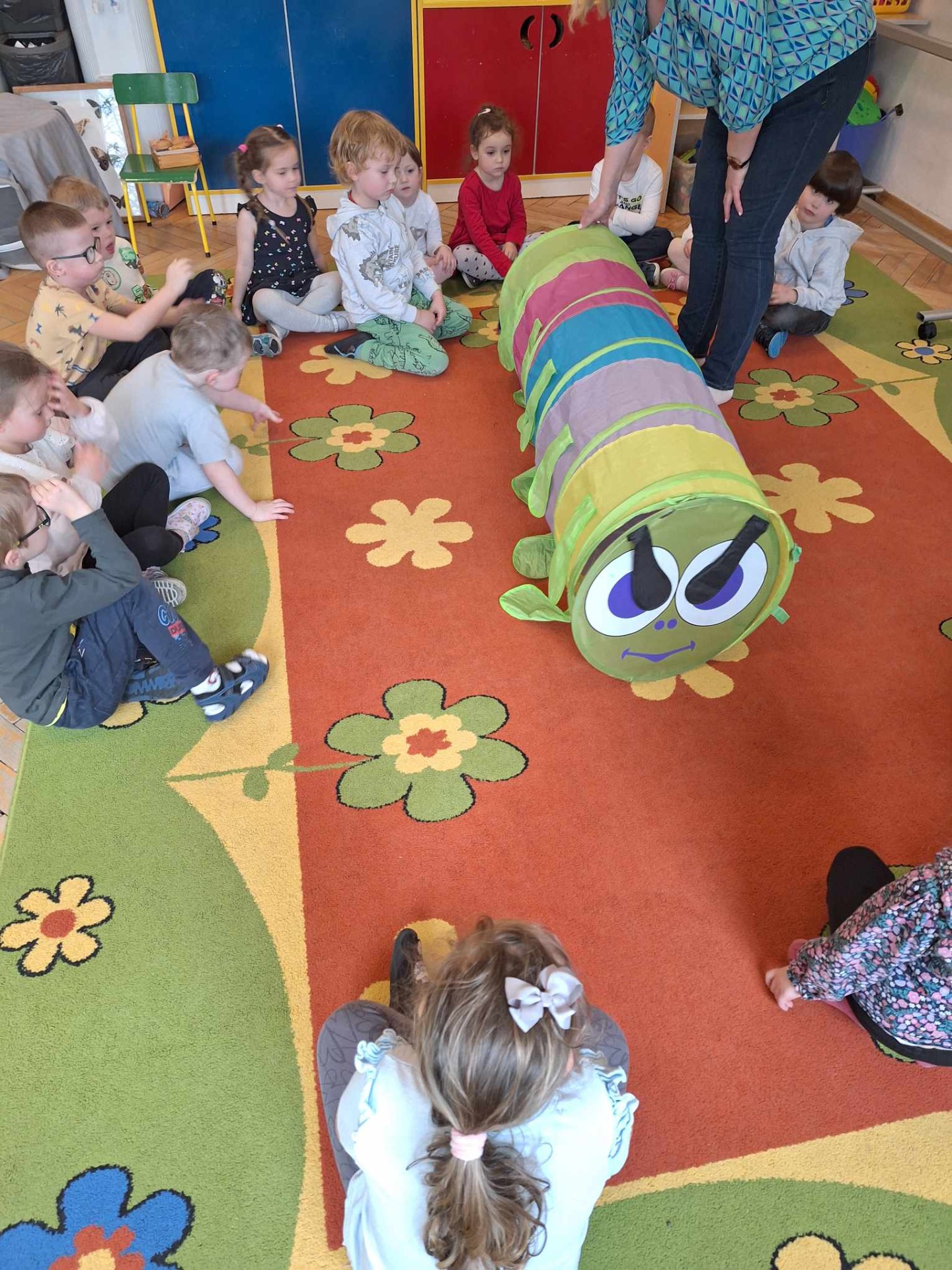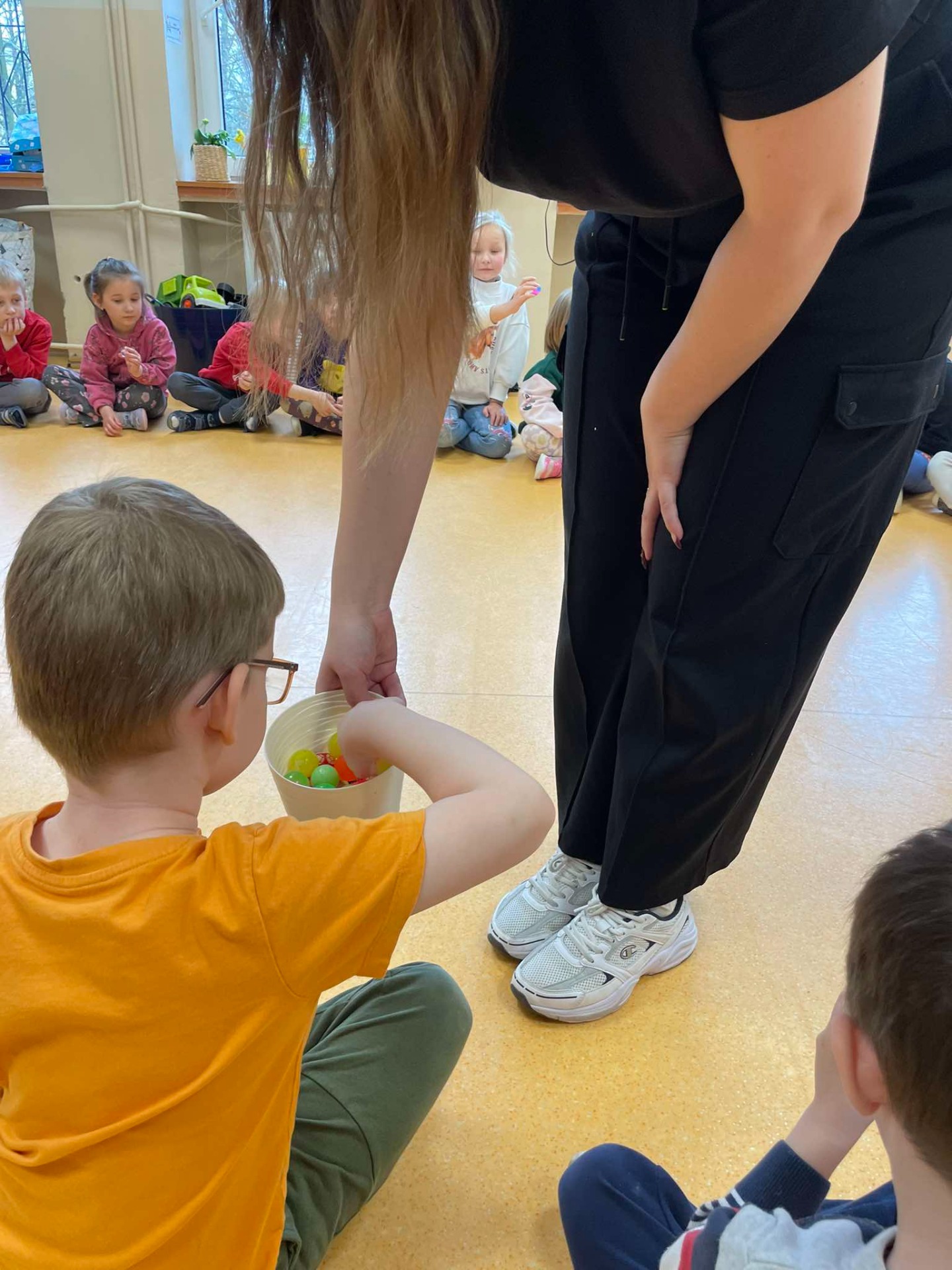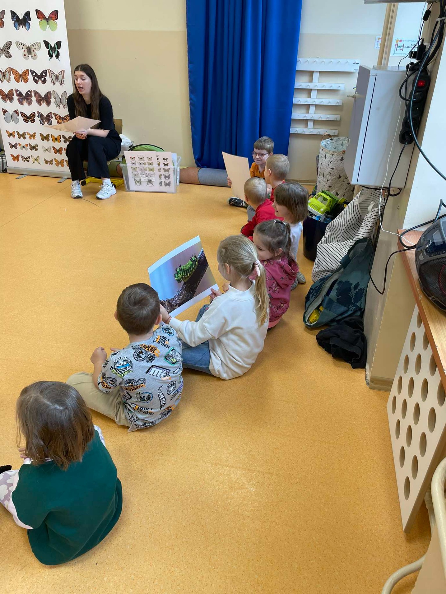 9.04.2025Dziś wszystkie przedszkolaki zebrały się w jednej sali, by obejrzeć zapowiedziane wcześniej przedstawienie „Król...