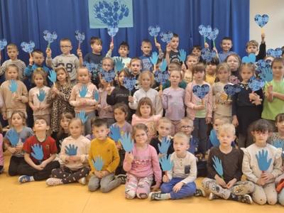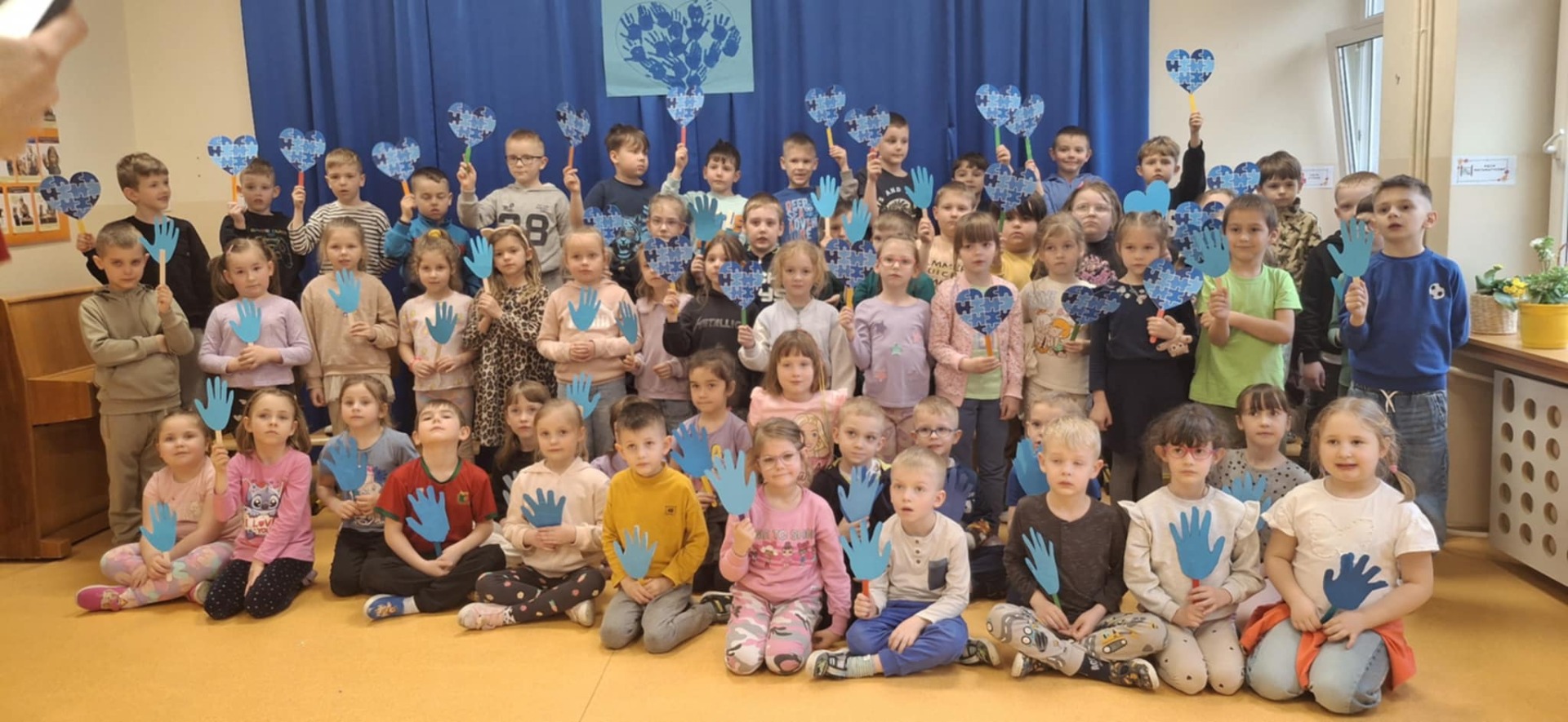 Grupy Jeżyki, Biedronki i Poziomki były przygotowane na marsz i obchodziły dzień solidarności z autyzmem w przedszkolu.