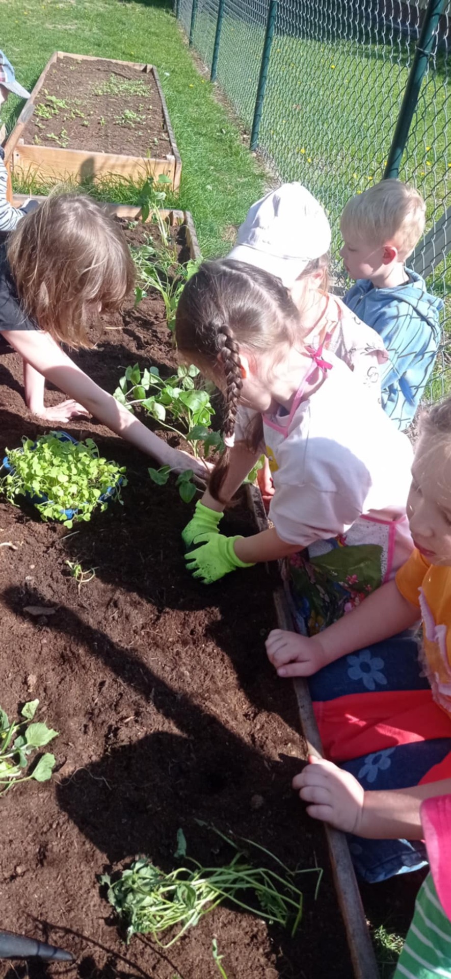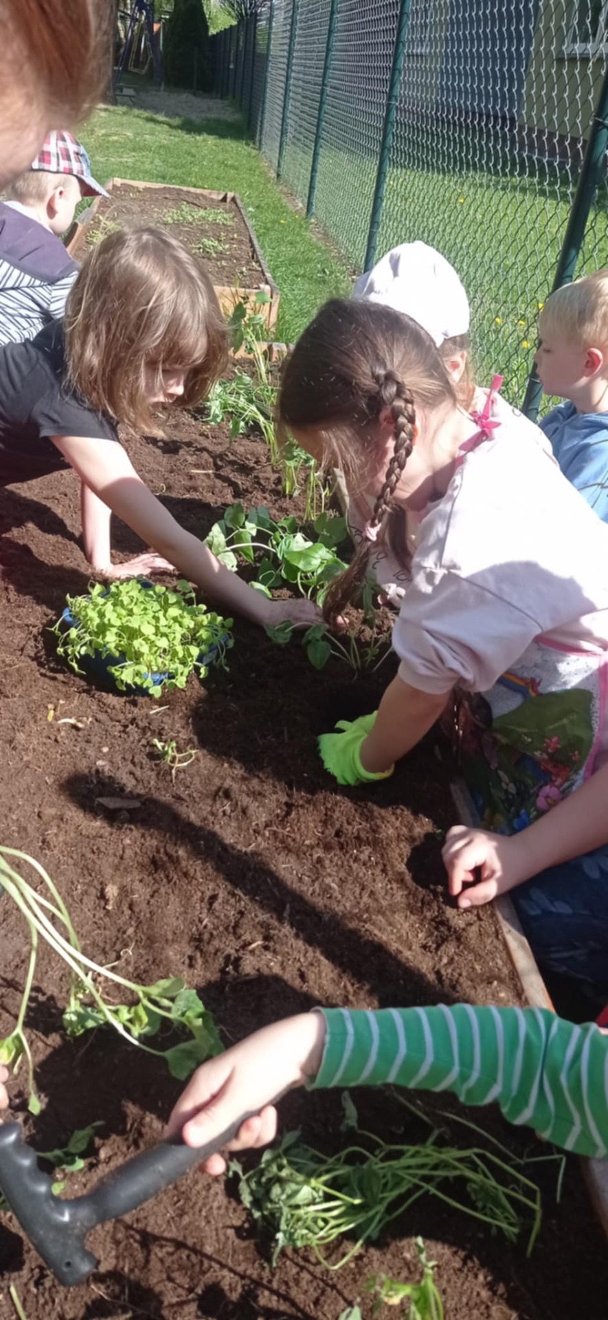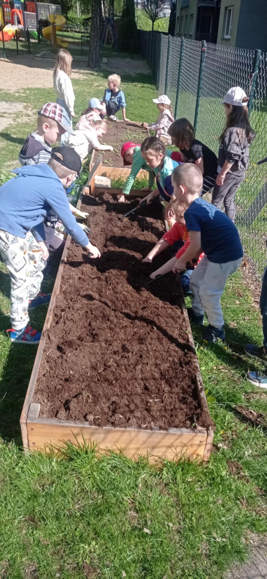 Poziomki z zaanga偶owaniem piel臋gnuj膮 podwy偶szone grz膮dki. Jedna z nich powoli zaczyna przekszta艂ca膰 si臋 w 艂膮czk臋 kwietn膮, druga zamieni艂a si臋 za przyczyn膮 dzieci w wawarzywnik- sze艣ciolatki bowiem posadzi艂y dzi艣: fasolnik, fasol臋, ogórki, pietruszk臋 oraz rzodkiewki. I ju偶 posmakowa艂y szczypiorku z w艂asnych upraw :)