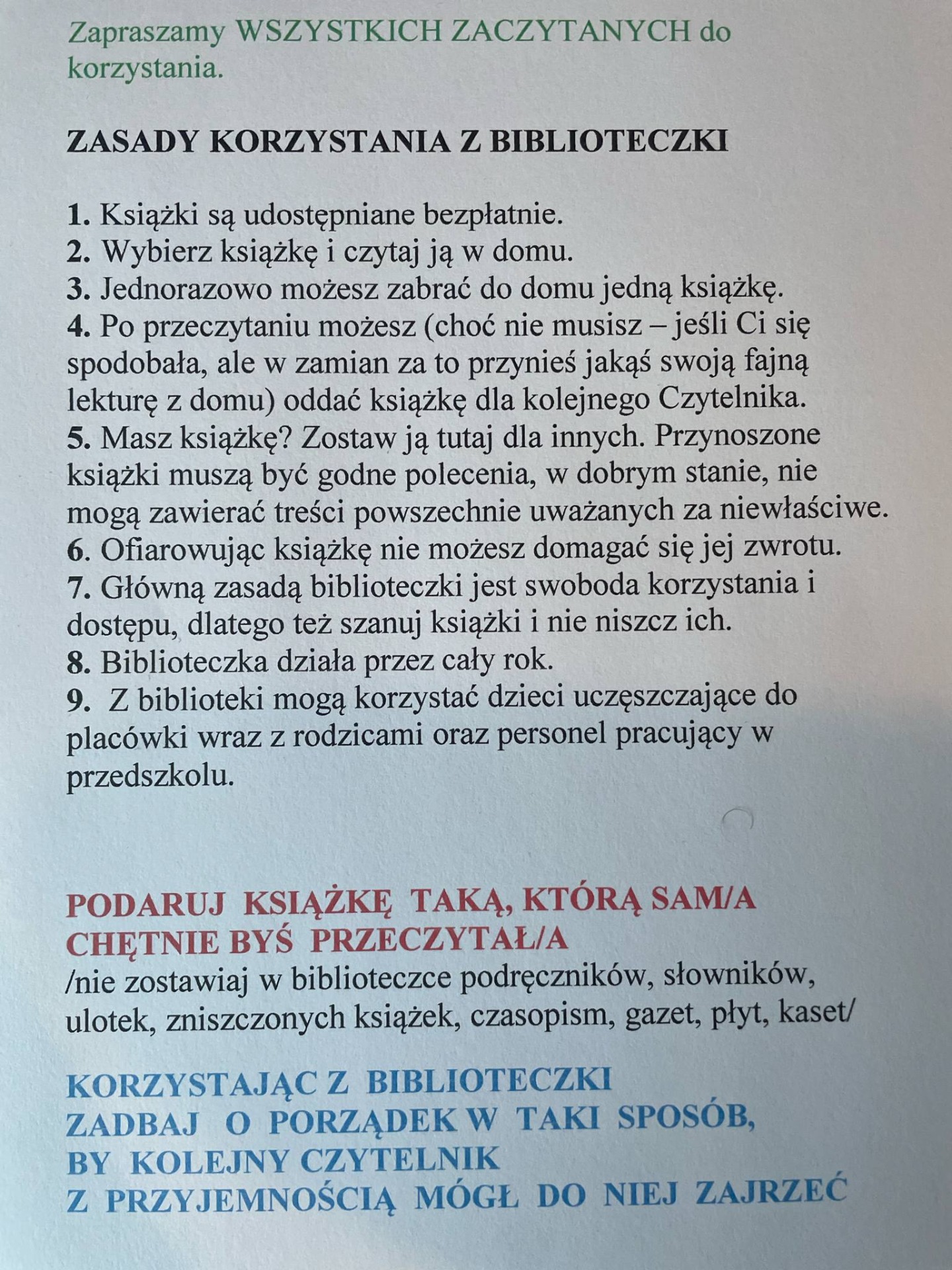 Biblioteczka w臋druj膮cej ksi膮偶ki ma swoje zasady, prosimy si臋 z nimi zapozna膰 i DZIELI膯 SI臉.
