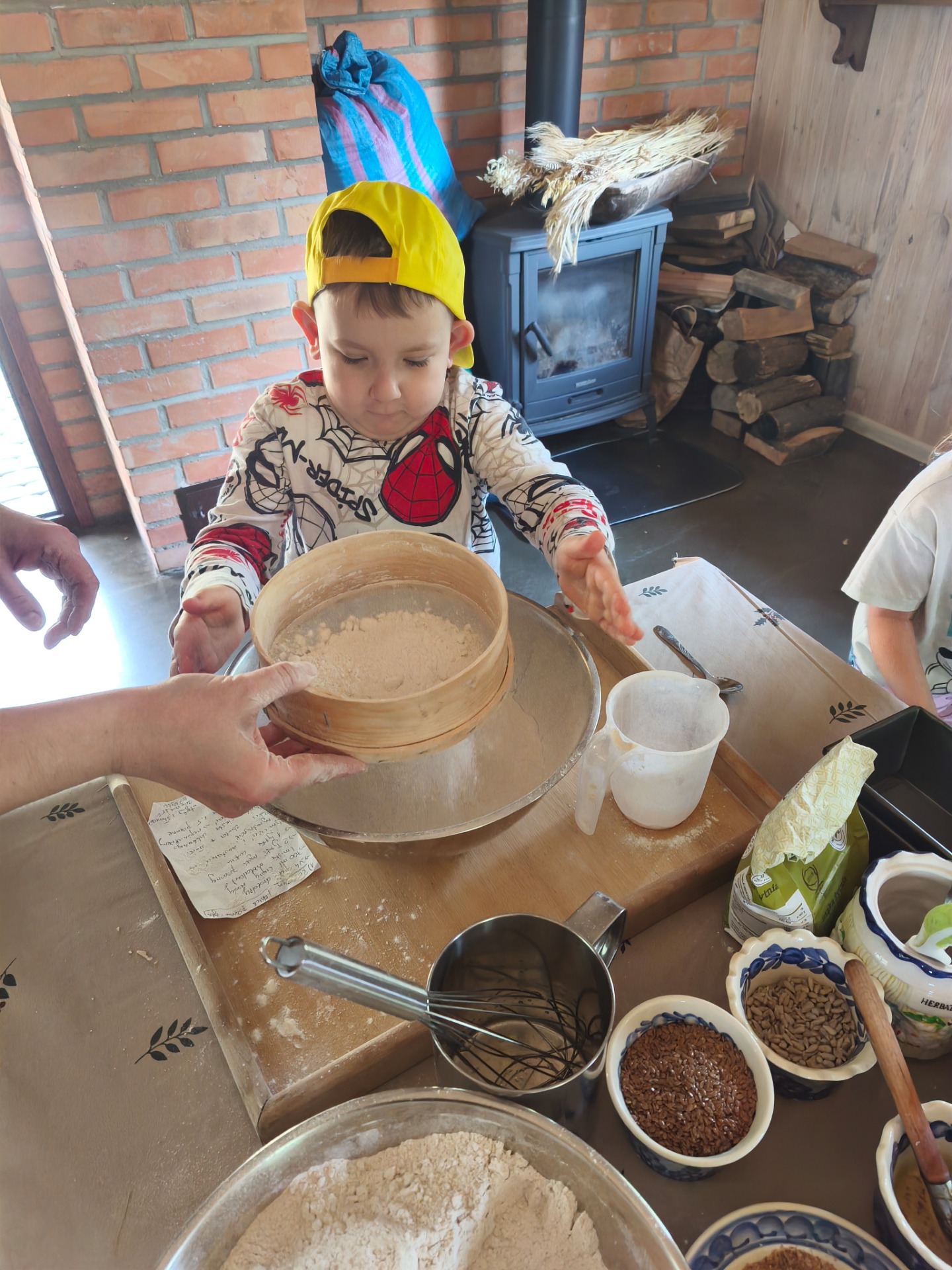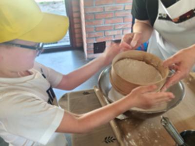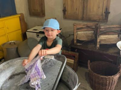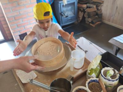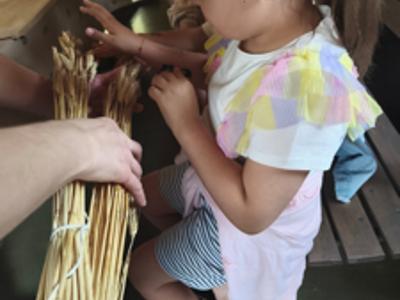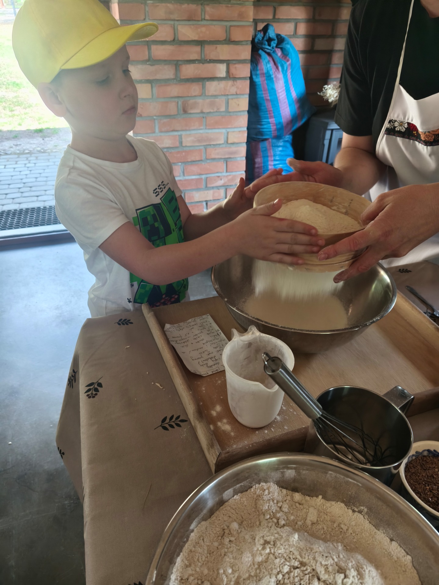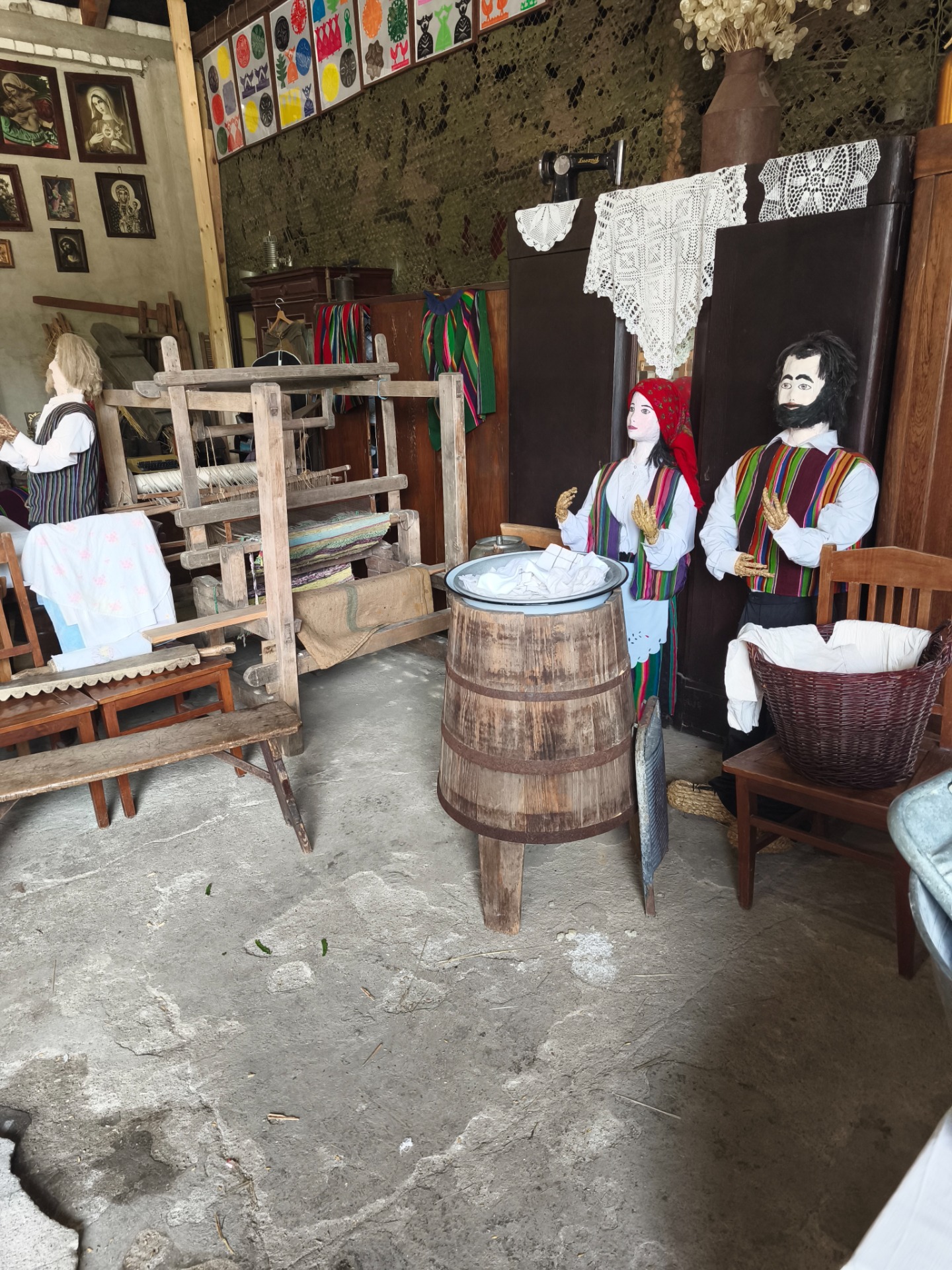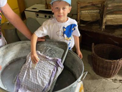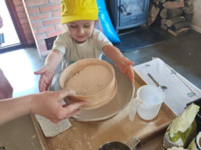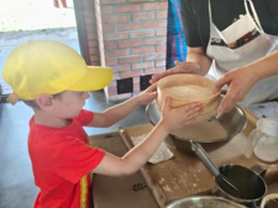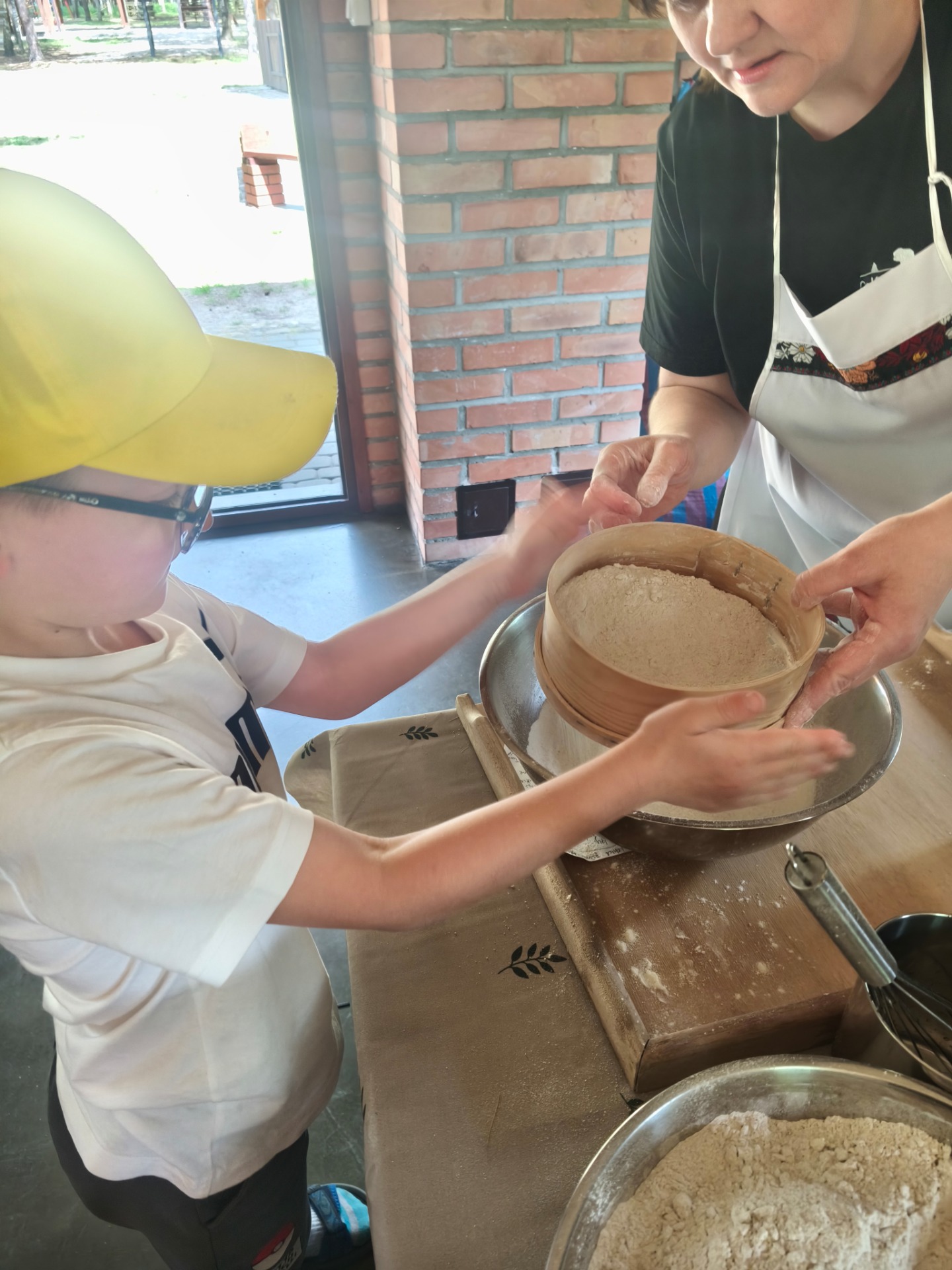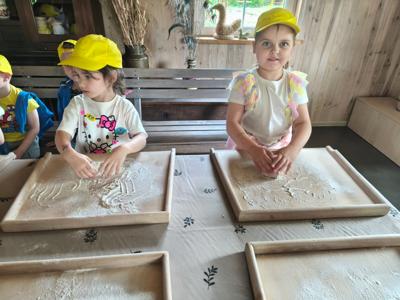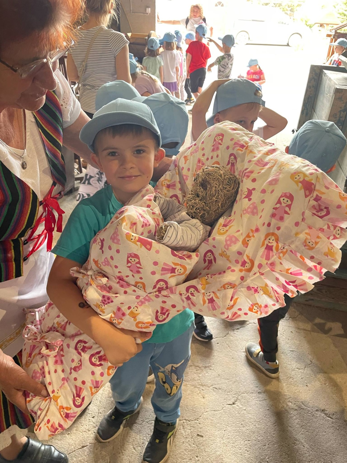 - zobaczyły jak żyli kiedyś rolnicy i mieszkańcy wsi, zwiedzając stodołę z maszynami i urządzeniami rolniczymi i wyposażeniem dawnej chałupy. Poznały sposoby zastosowania maszyn i upraw zboża ich rodzaje,, młocka cepami, warsztat tkacki - przędzenie na kołowrotku i tkanie na krosnach, pranie na tarze.