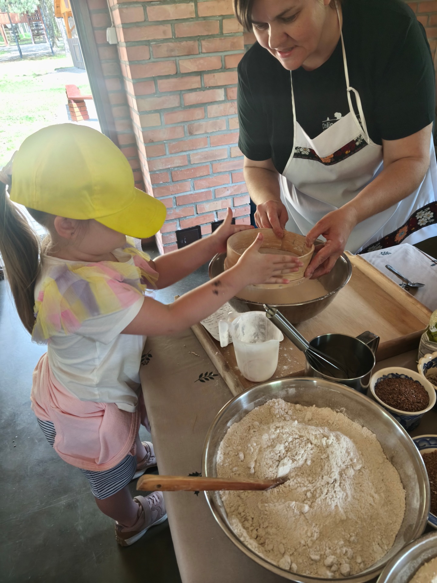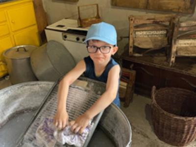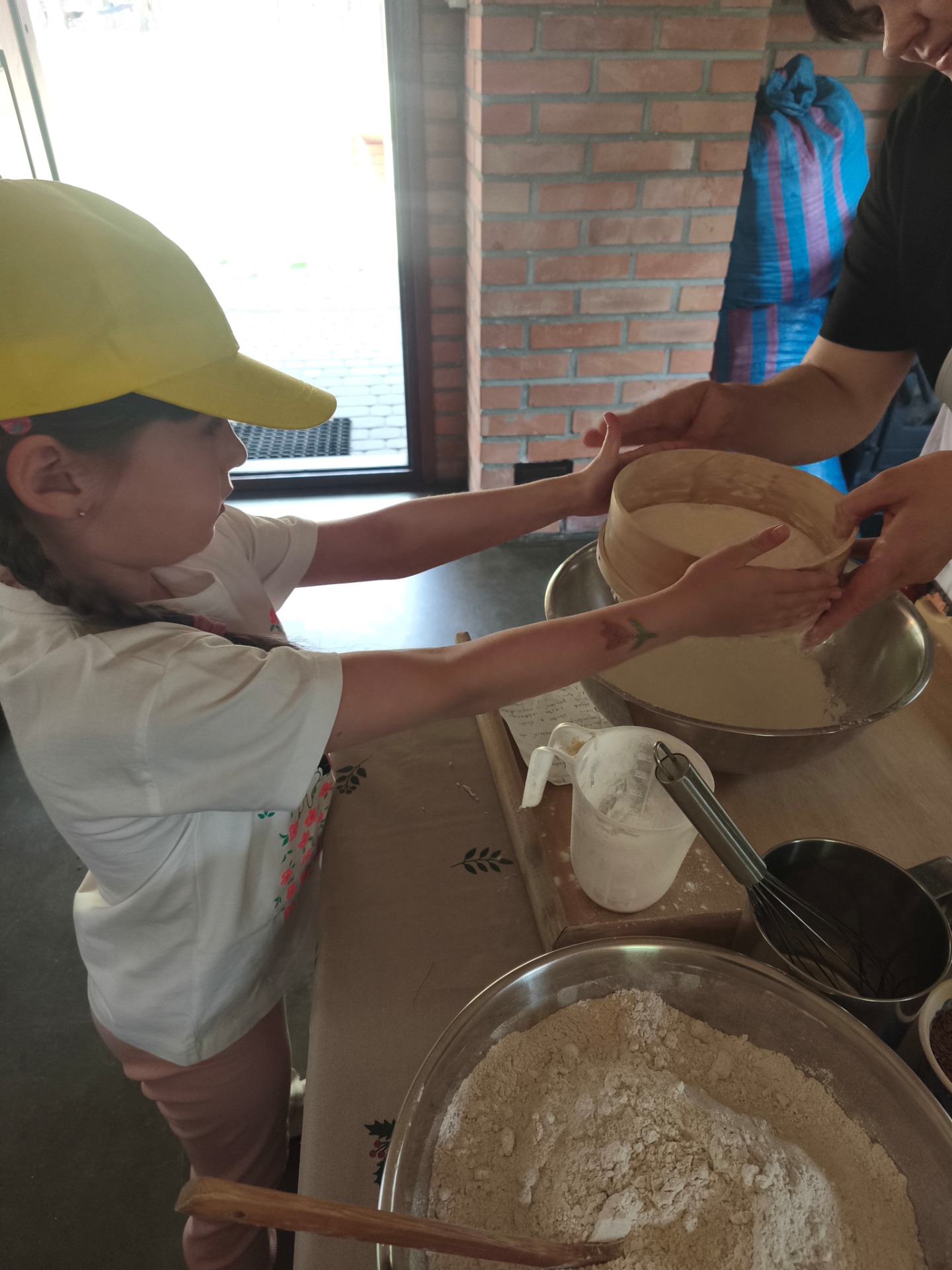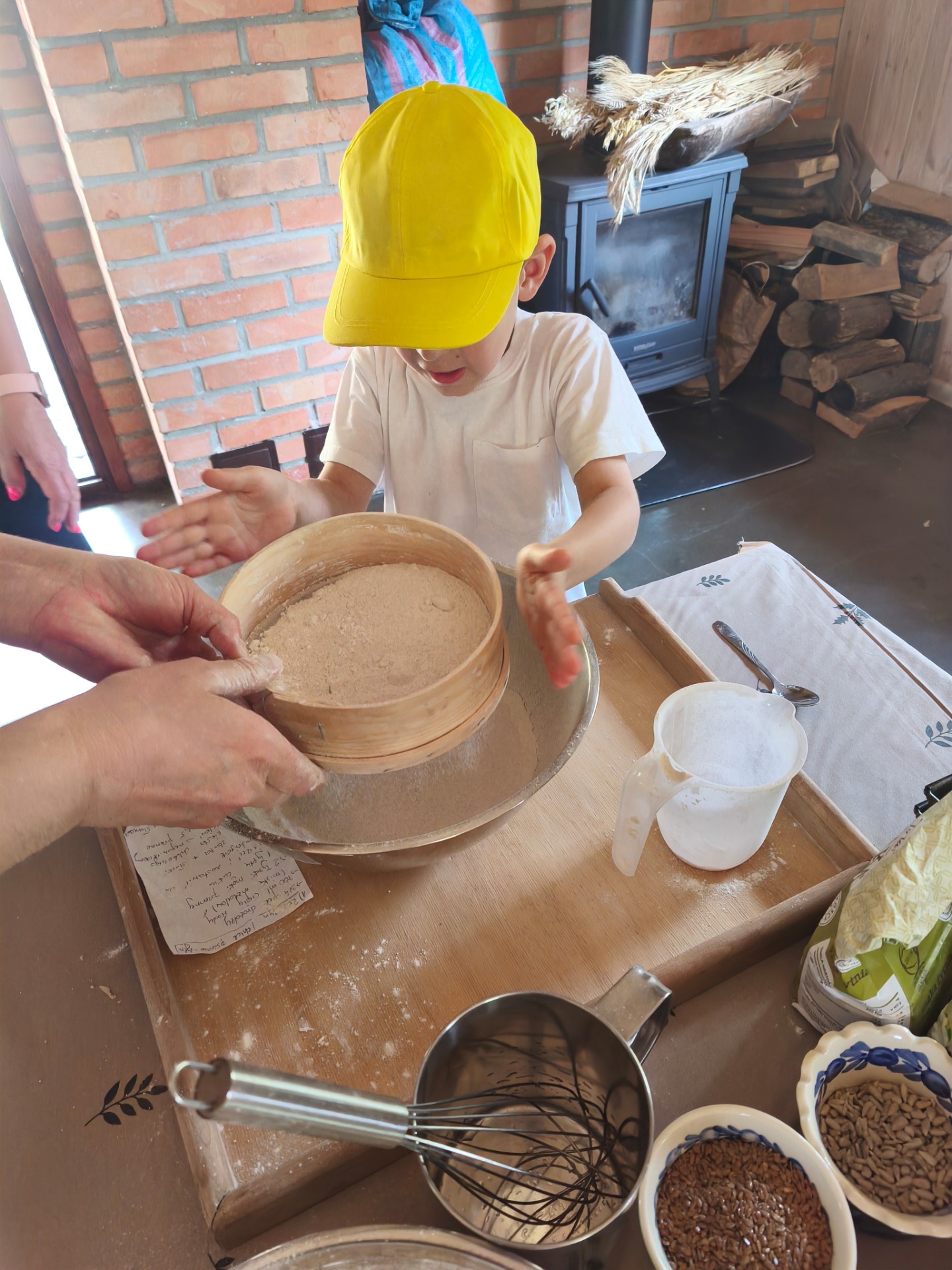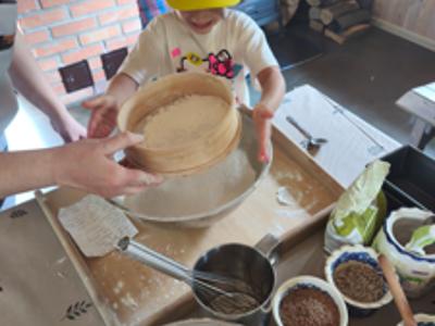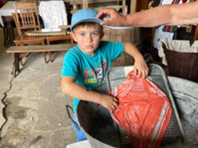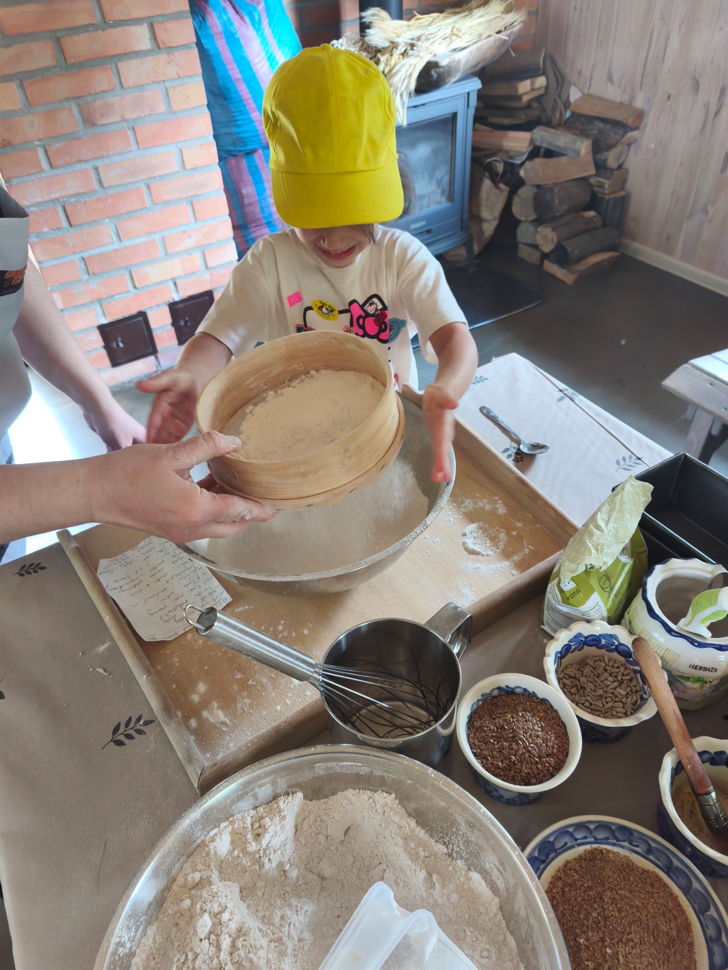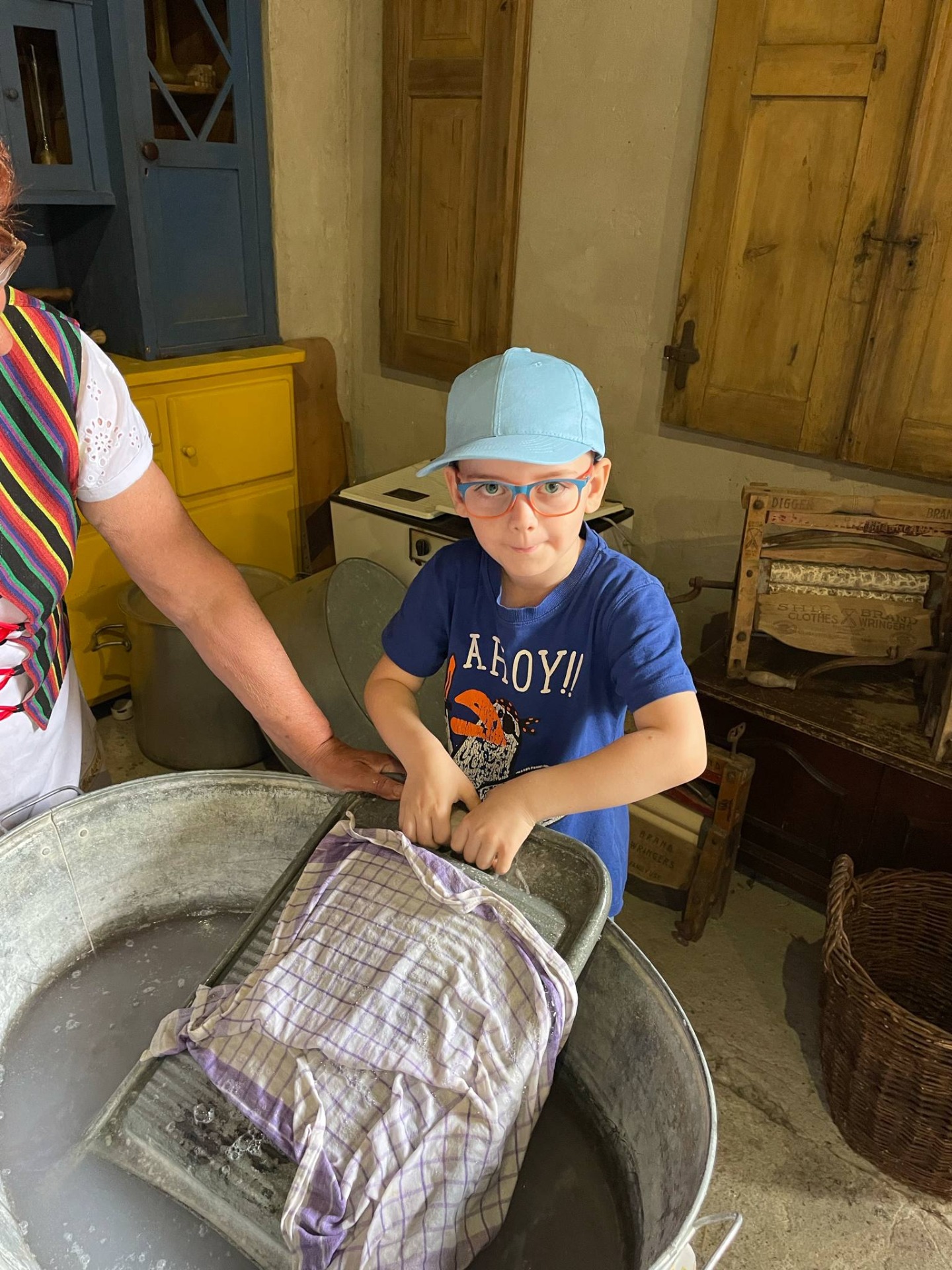 - zobaczyły jak żyli kiedyś rolnicy i mieszkańcy wsi, zwiedzając stodołę z maszynami i urządzeniami rolniczymi i wyposażeniem dawnej chałupy. Poznały sposoby zastosowania maszyn i upraw zboża ich rodzaje,, młocka cepami, warsztat tkacki - przędzenie na kołowrotku i tkanie na krosnach, pranie na tarze.
