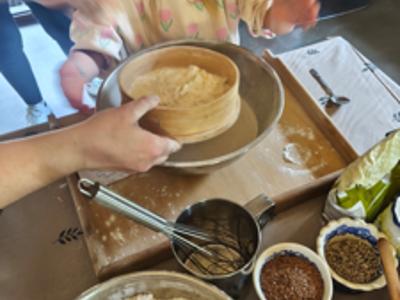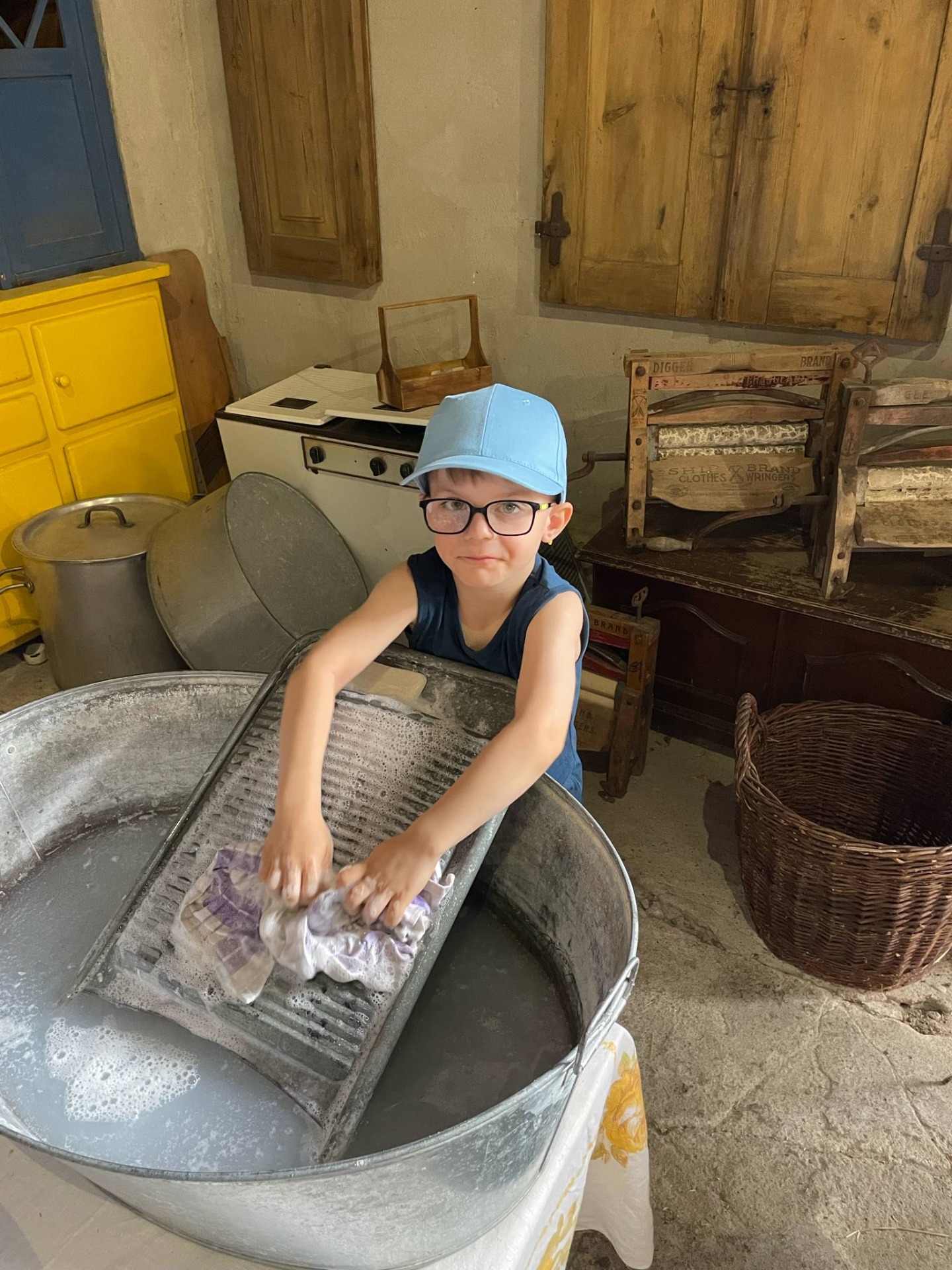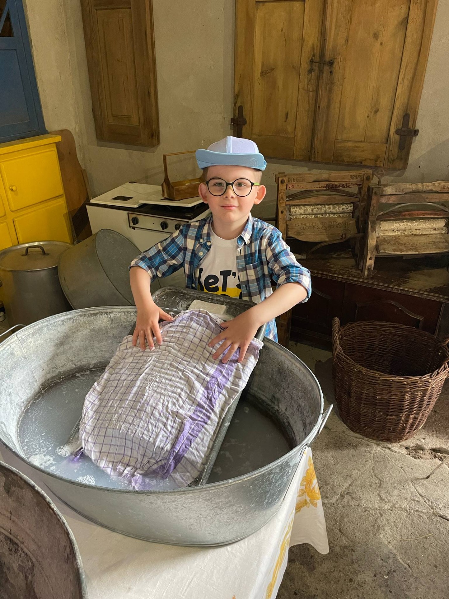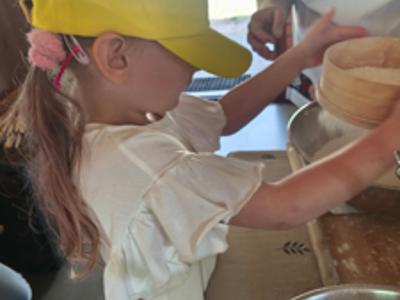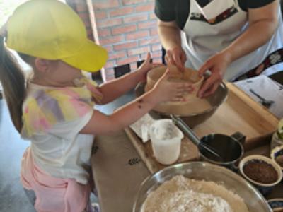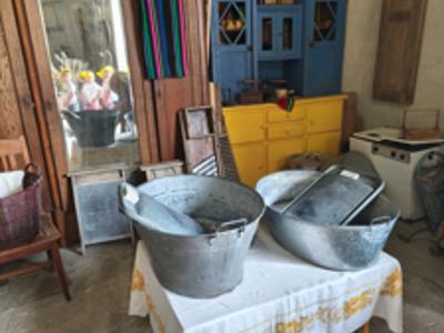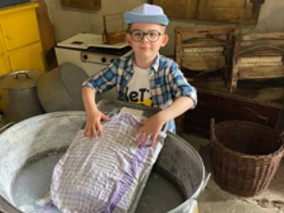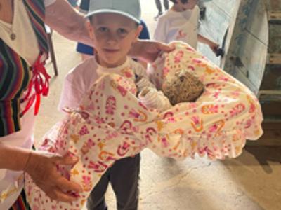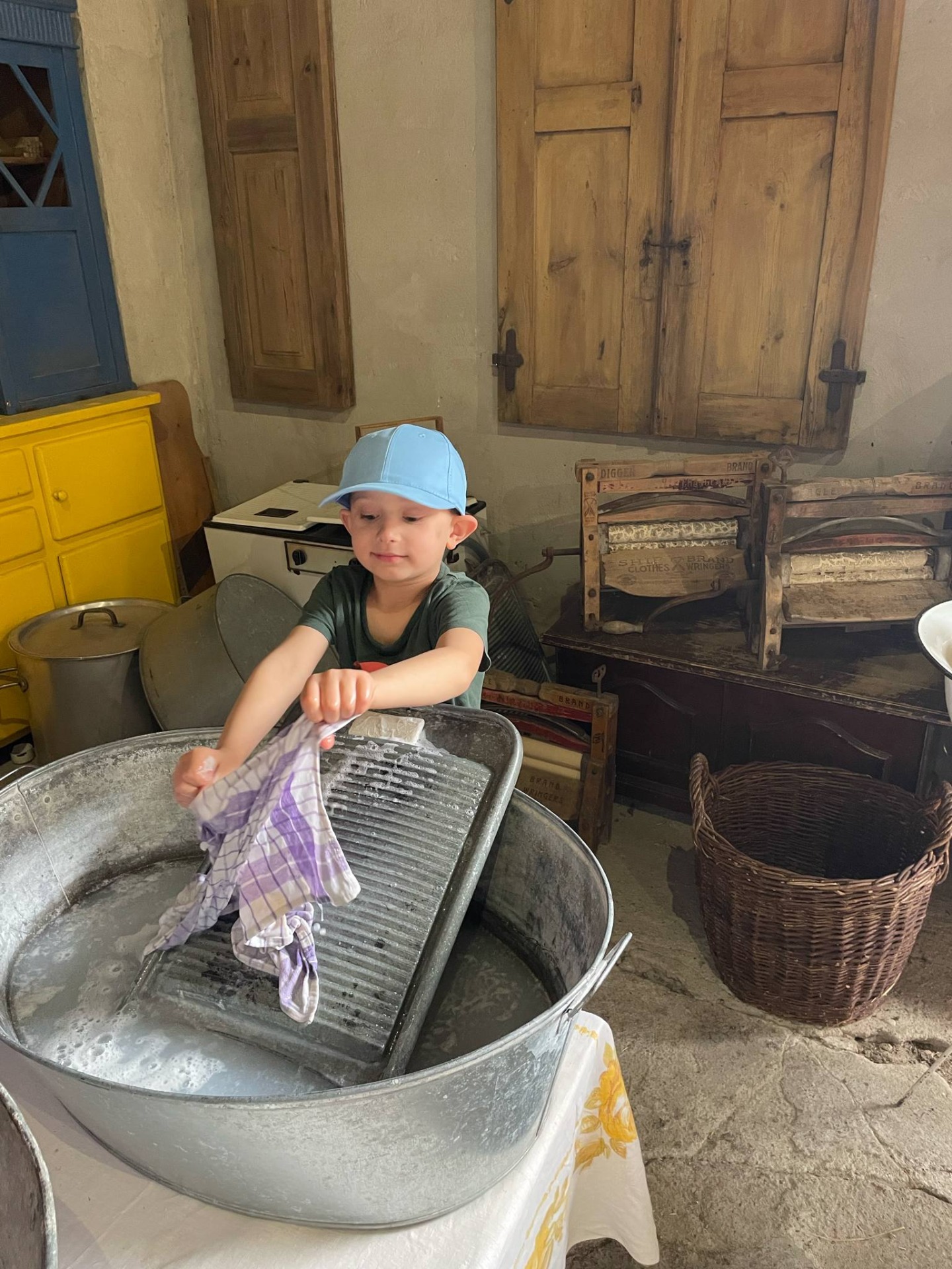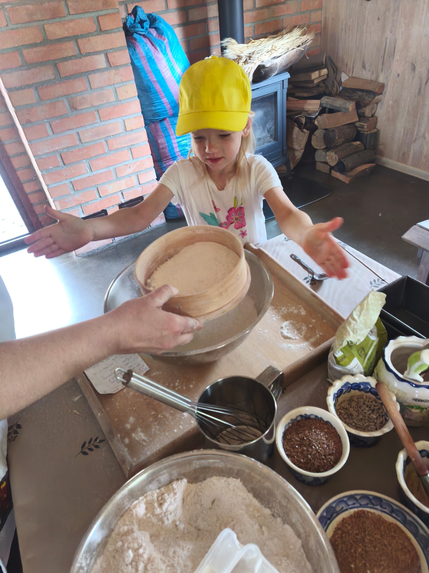 - zobaczyły jak żyli kiedyś rolnicy i mieszkańcy wsi, zwiedzając stodołę z maszynami i urządzeniami rolniczymi i wyposażeniem dawnej chałupy. Poznały sposoby zastosowania maszyn i upraw zboża ich rodzaje,, młocka cepami, warsztat tkacki - przędzenie na kołowrotku i tkanie na krosnach, pranie na tarze.