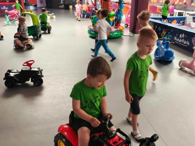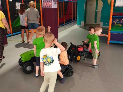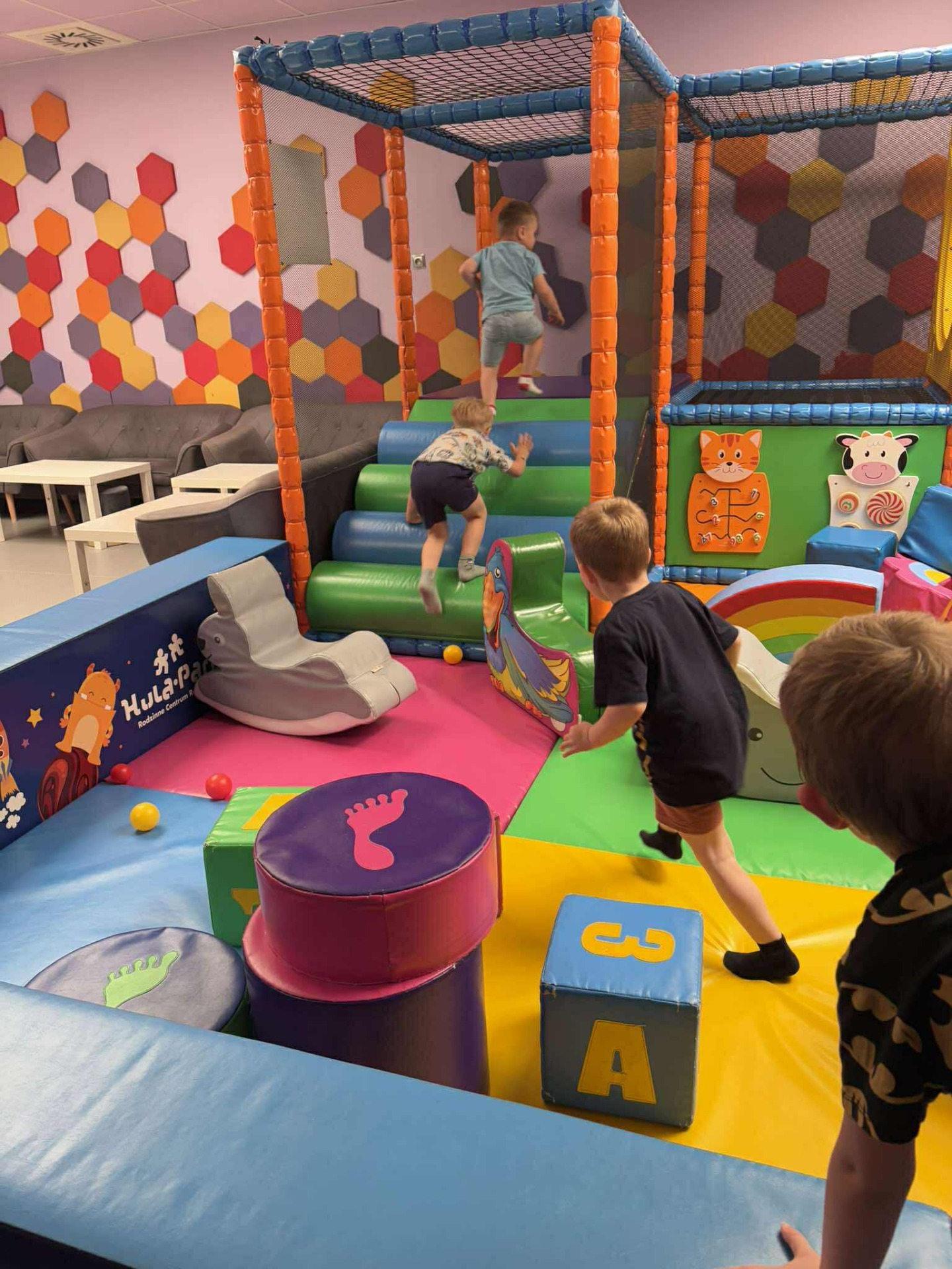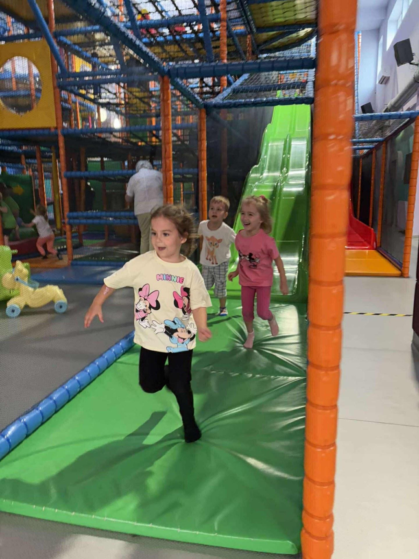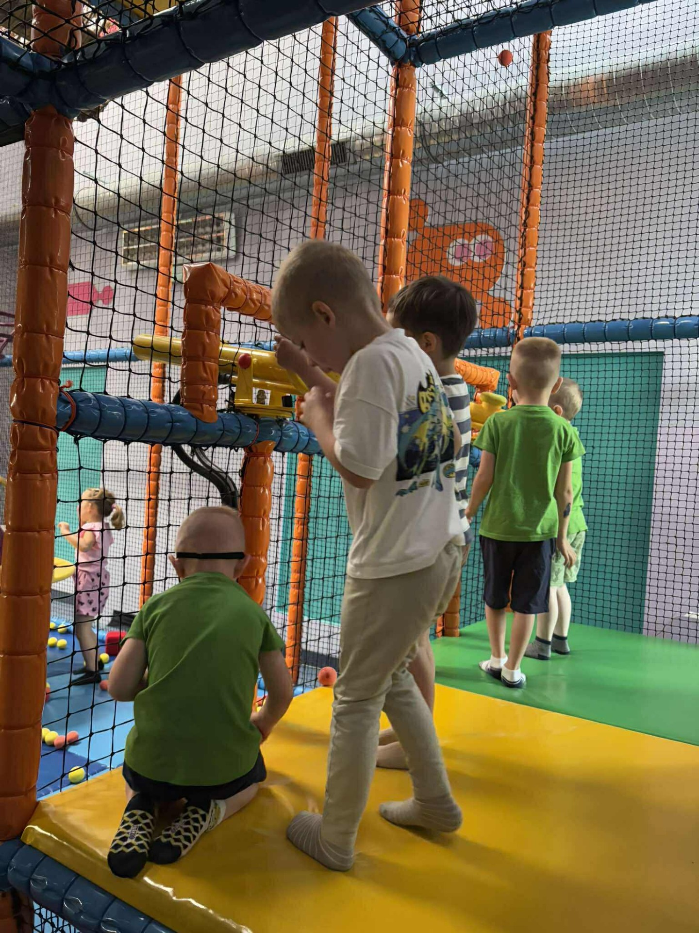W piątek , 06.06.2025 r. dzieci z grup "Nutki" i "Sarenki" wyruszyły na wycieczkę do sali zabaw "Hula Park" w Radomiu. Celem naszej wycieczki była przede wszystkim integracja rówieśniczych grup, rozwijanie motoryki dużej i małej dzieci oraz stworzenie możliwości radosnego spędzenia czasu. W sali zabaw przedszkolaki mogły skorzystać z licznych atrakcji, m.in. z basenu z tysiącem kulek, tuneli, zjeżdżać na zjeżdżalni, budować obiekty z dużych klocków . Zadowolone, nieco zmęczon, pełne wrażeń dzieci wróciły do Przedszkola.