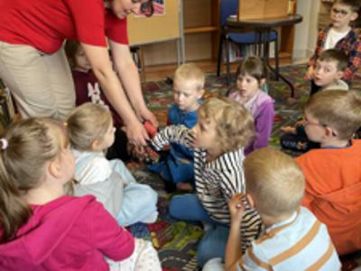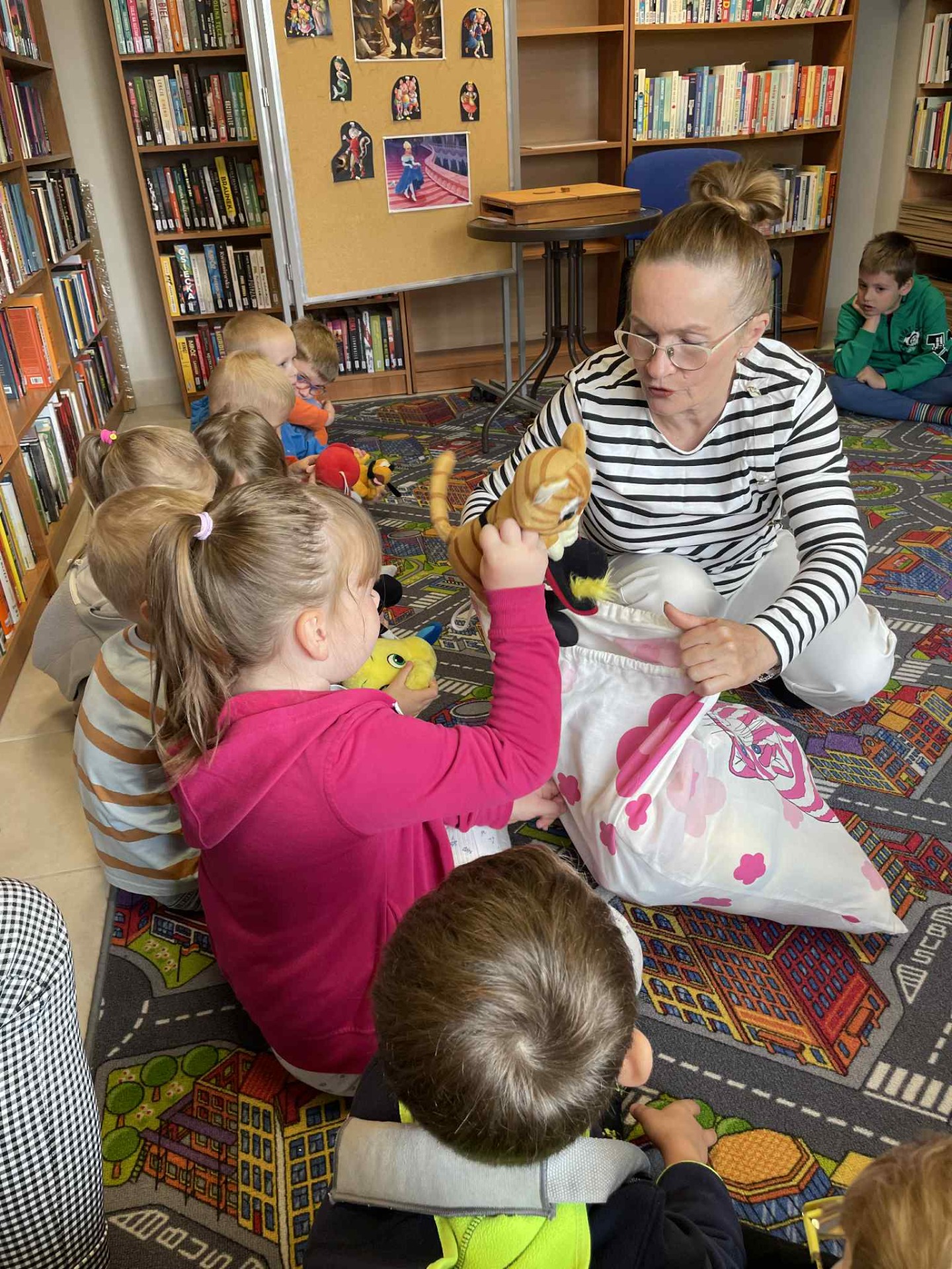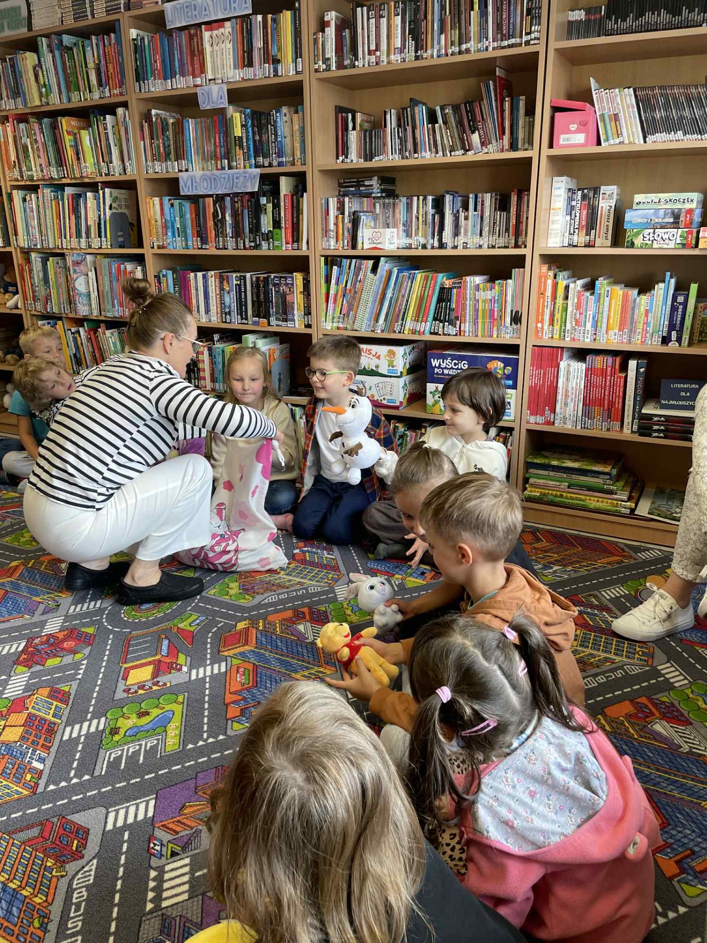 Celem wycieczki było zapoznanie dzieci z działalnością biblioteki, rozbudzanie zainteresowań czytelniczych, kształtowanie poczucia szacunku dla książek. Podczas spotkania Panie zapoznały dzieci z pracą bibliotekarza, pokazały książki i zachęcały do ich wypożyczania. Przedszkolaki miały okazję wysłuchać bajki, o różnych znanych z bajek i baśni bohaterach książek. Spotkanie zakończyły zabawy przygotowane dla Pszczółek. Zachęcamy dzieci z rodzicami do częstego odwiedzania biblioteki i wspólnego czytania bajek w domowym zaciszu.