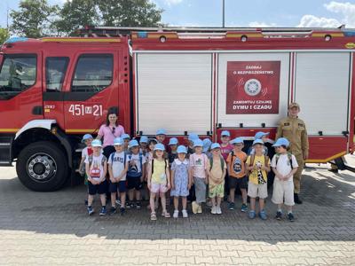 18.06.25 r grupa 5A - Pszczółki wybrała się z wizytą do Komendy Powiatowej Państwowej Straży Pożarnej w Grójcu.