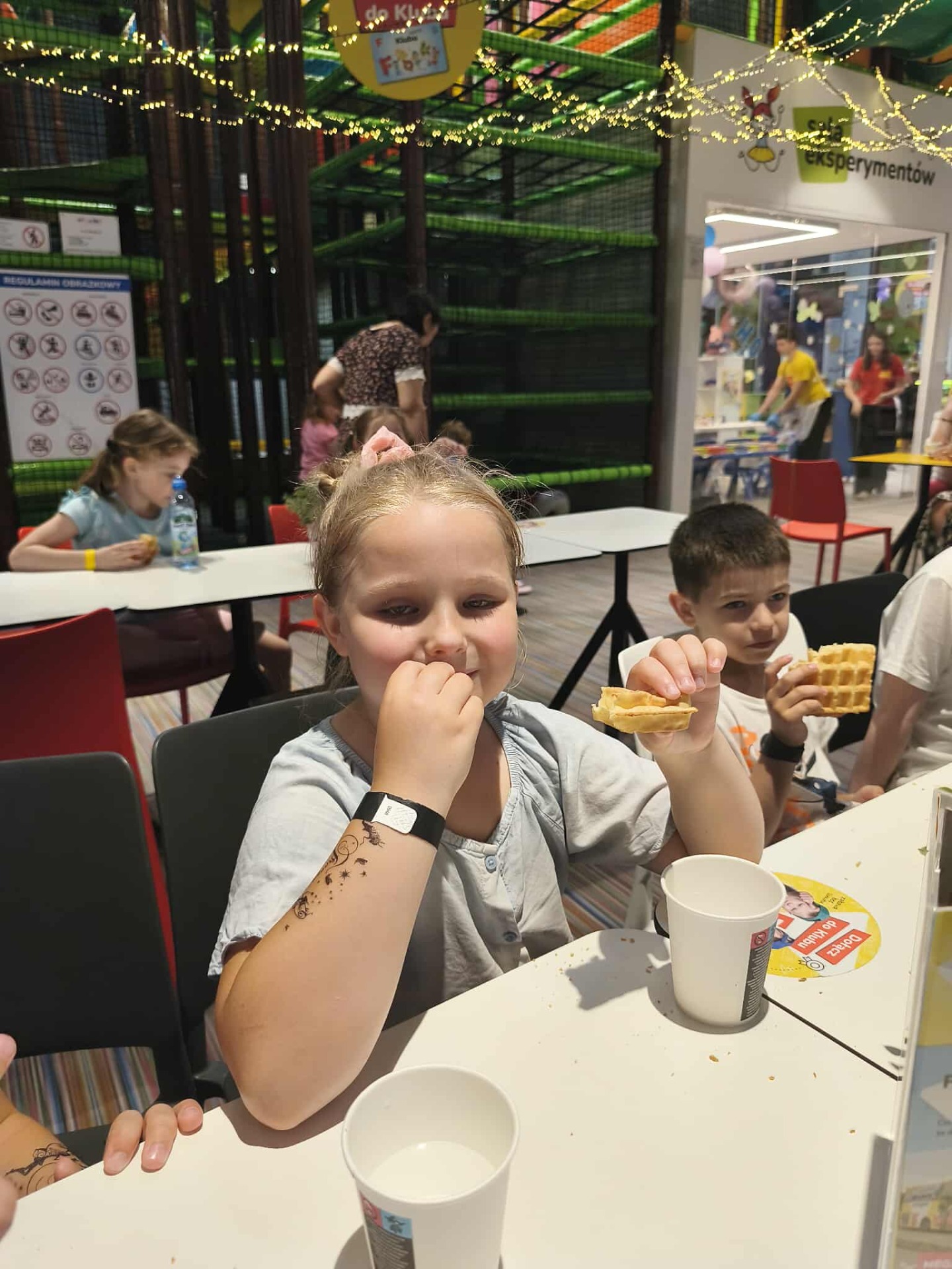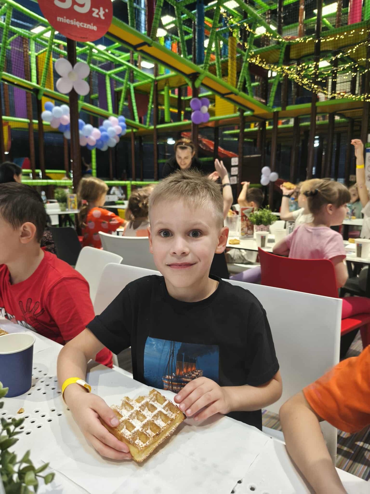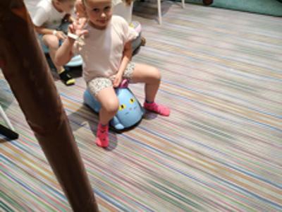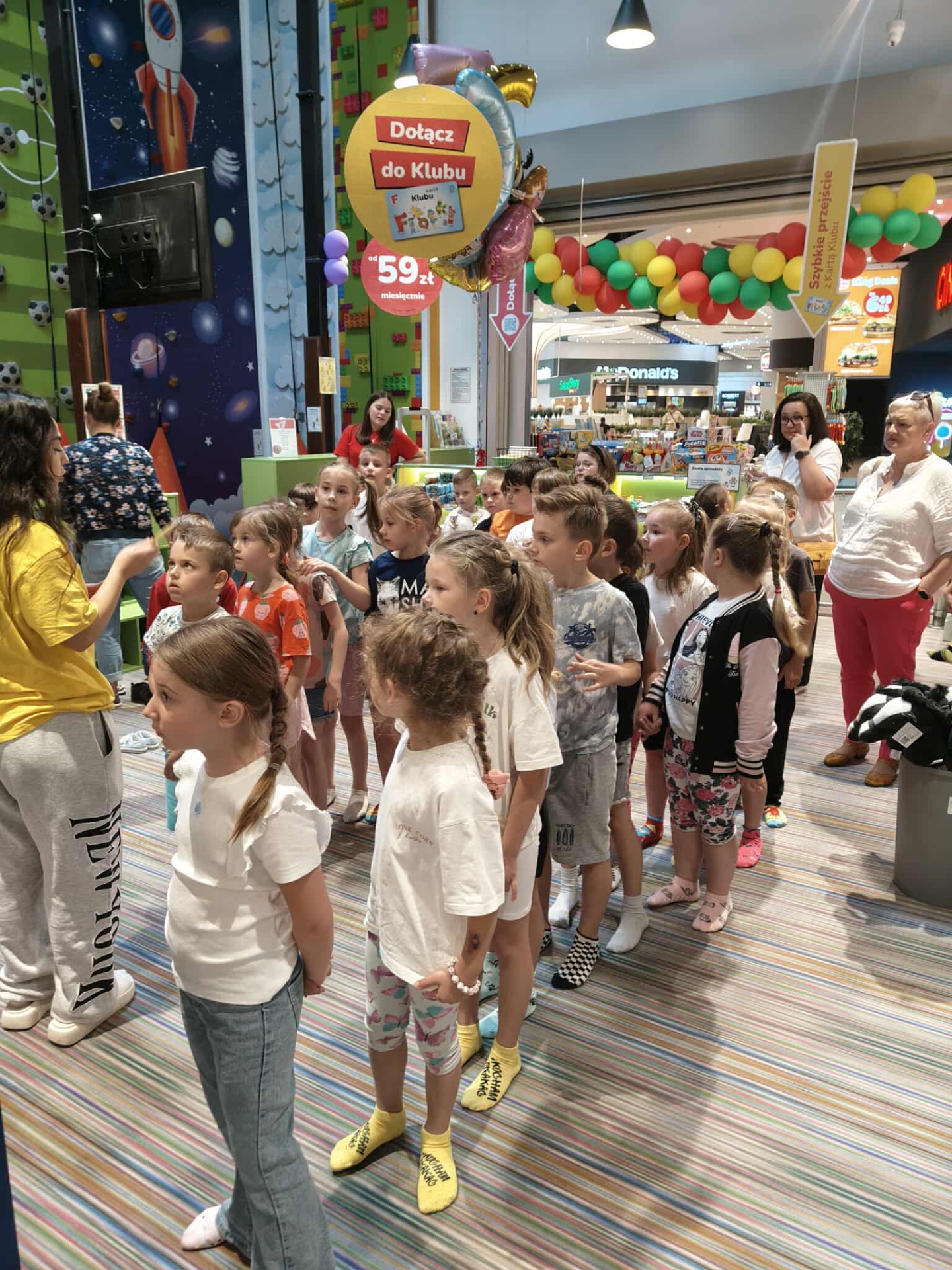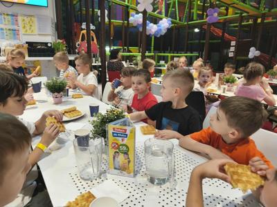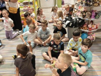 Po występie, dumne ze swoich osiągnięć przedszkolaki, udały się na wycieczkę do sali zabaw "Fikołki" w Jankach. Tam, po emocjach związanych z występem, mogły zasłużenie odpocząć i świetnie się bawić.