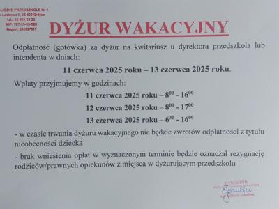 24.02.2025Deklaracje kontynuacji i rekrutacja do przedszkoli W terminie od 24 lutego 2025 do 5 marca 2025 przyjmowane będą...
