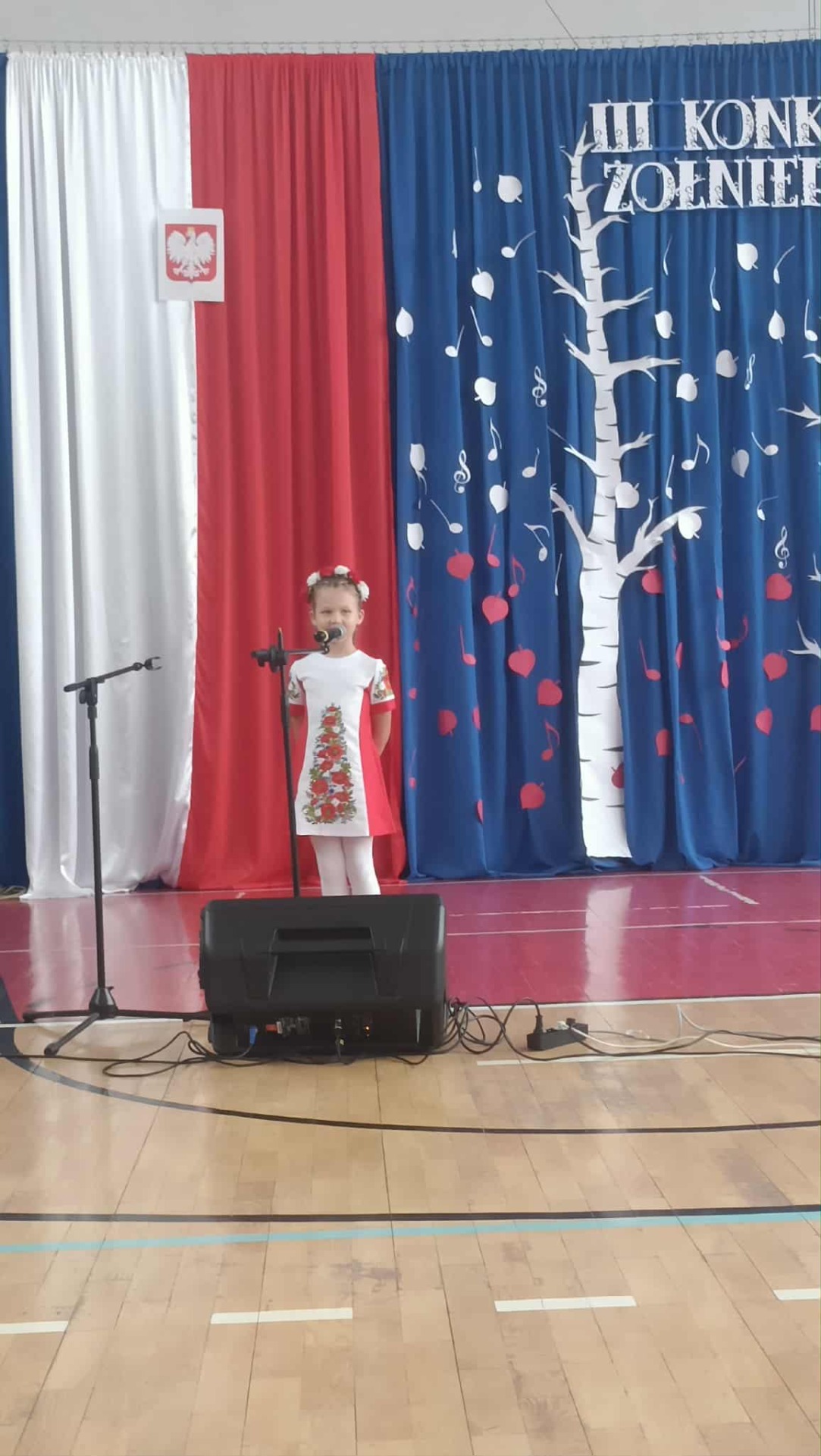 Z ogromną radością informujemy, że Aniela Pietrzak z grupy Myszki zdobyła I miejsce w II etapie Konkursu Piosenki Żołnierskiej! 🏆🎤
