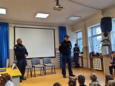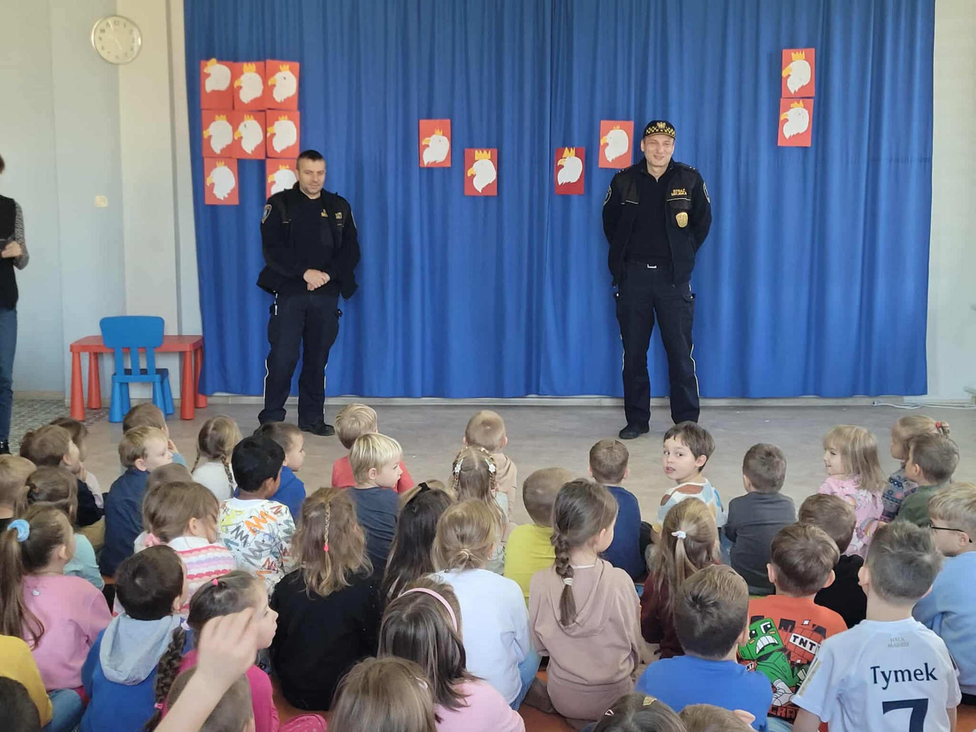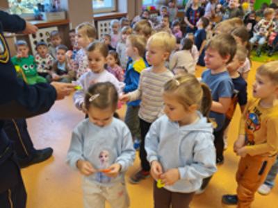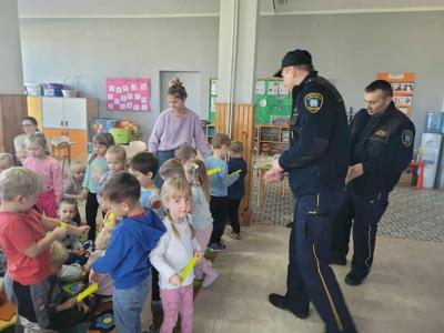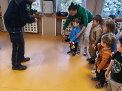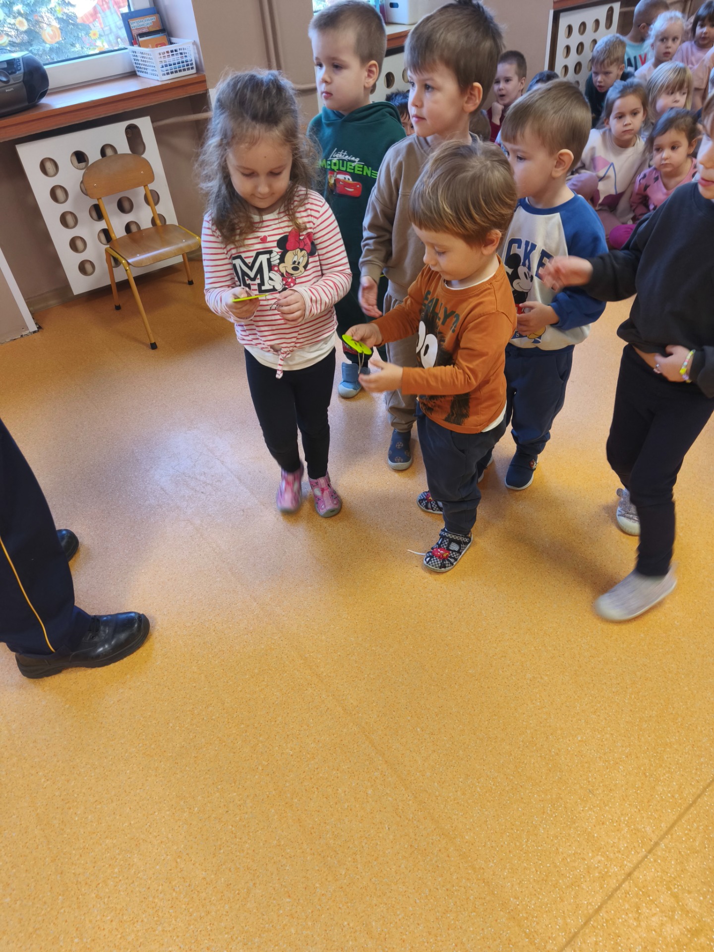 W dniu 13 listopada 2025 r. patrol Straży Miejskiej w Grójcu odwiedził nasze przedszkole . W ramach zajęć edukacyjnych przedszkolakom przybliżono zawód Strażnika Miejskiego. Tematem spotkania były również sprawy bezpiecznego poruszania się po drodze, jak ważny jest odblask na tornistrze lub odzieży. Omówiono zasady postępowania w przypadku spotkania obcego psa lub innych zwierząt. Przypomniane zostały numery alarmowe do poszczególnych służb. Przeprowadzona pogadanka cieszyła się dużym zainteresowaniem i zaangażowaniem dzieci.