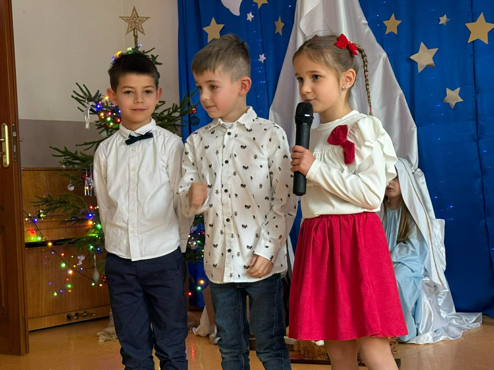 Przed艣wi膮teczny czas przedszkolach to nie tylko okazja do wsp贸lnego 艣wi臋towania, ale te偶 zaprezentowania przez najm艂odszych ich talent贸w artystycznych. Takim niew膮tpliwie pochwali艂y si臋 dzieci przygotowuj膮c i wystawiaj膮c 18 i 19 grudnia wraz z opiekunami Jase艂ka Bo偶onarodzeniowe.