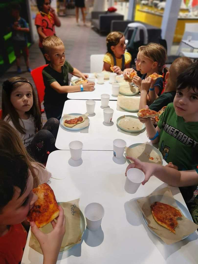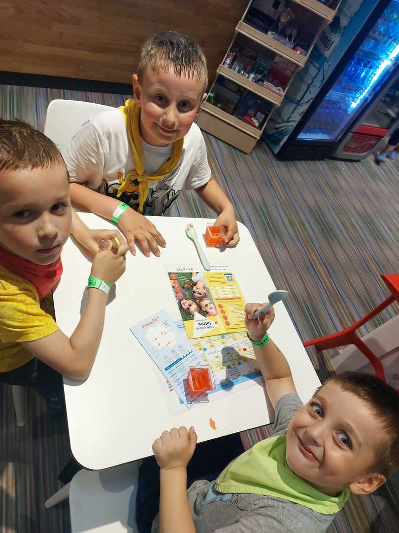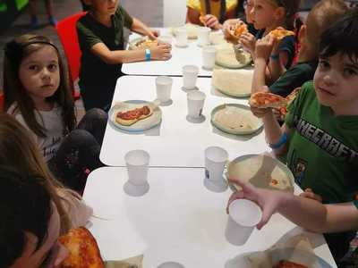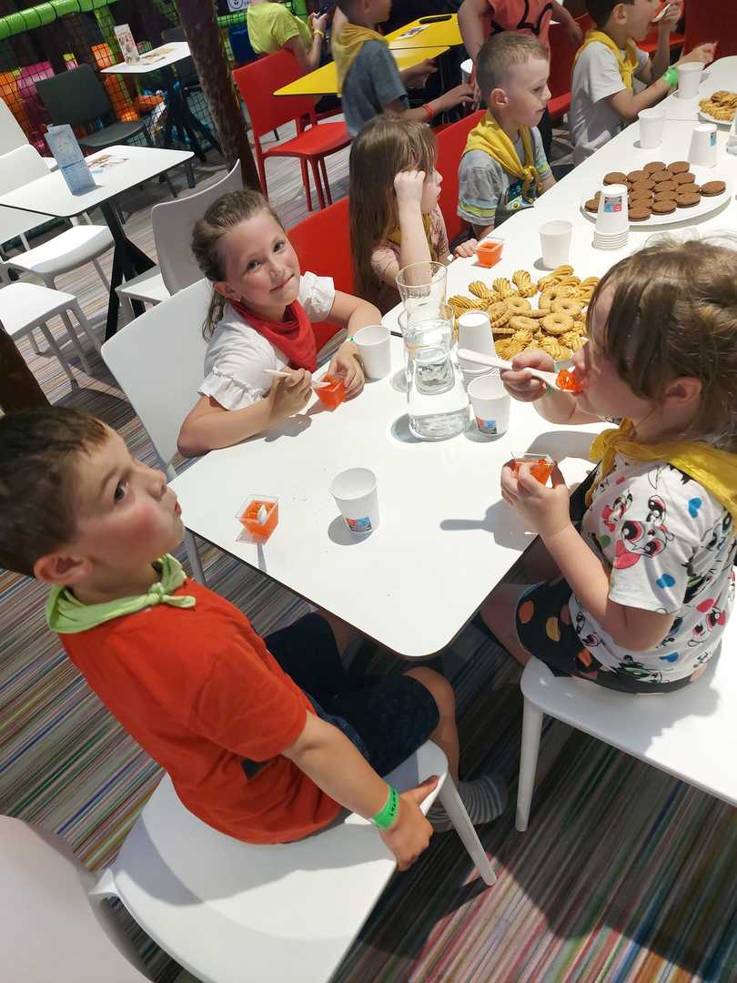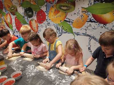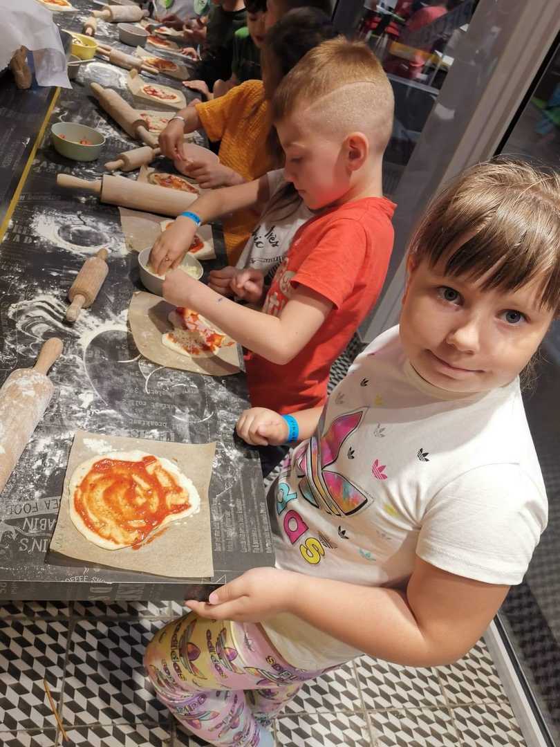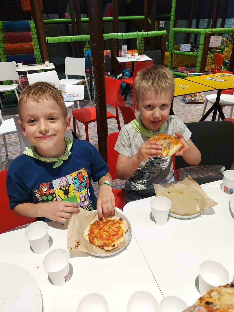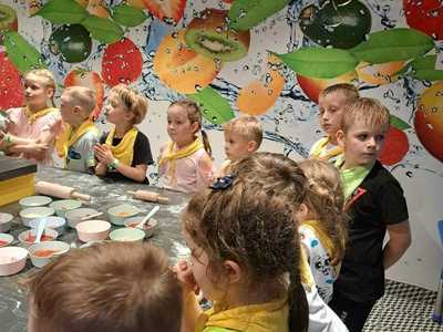 Tak uroczysty dzień uczciliśmy jeszcze wycieczką. Wszystkie trzy grupy udały się do sali zabaw Fikołki w Jankach, gdzie czekały na ich warsztaty kulinarne (robienie pizzy), warsztaty chemiczne oraz zabawy na konstrukcjach w sali. Uśmiechy nie schodziły z twarzy, a zabawy nie było końca