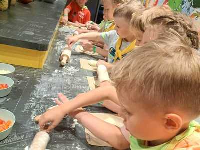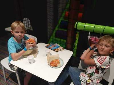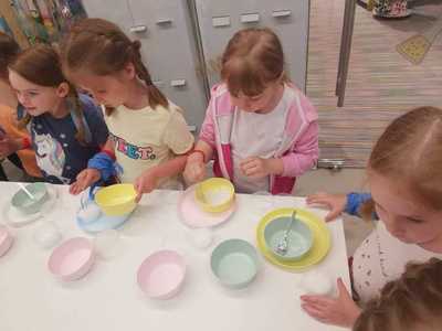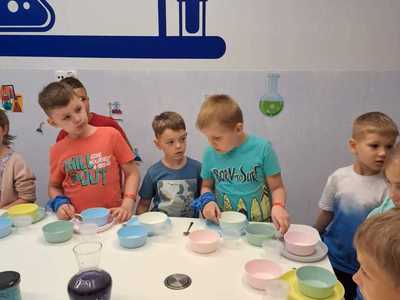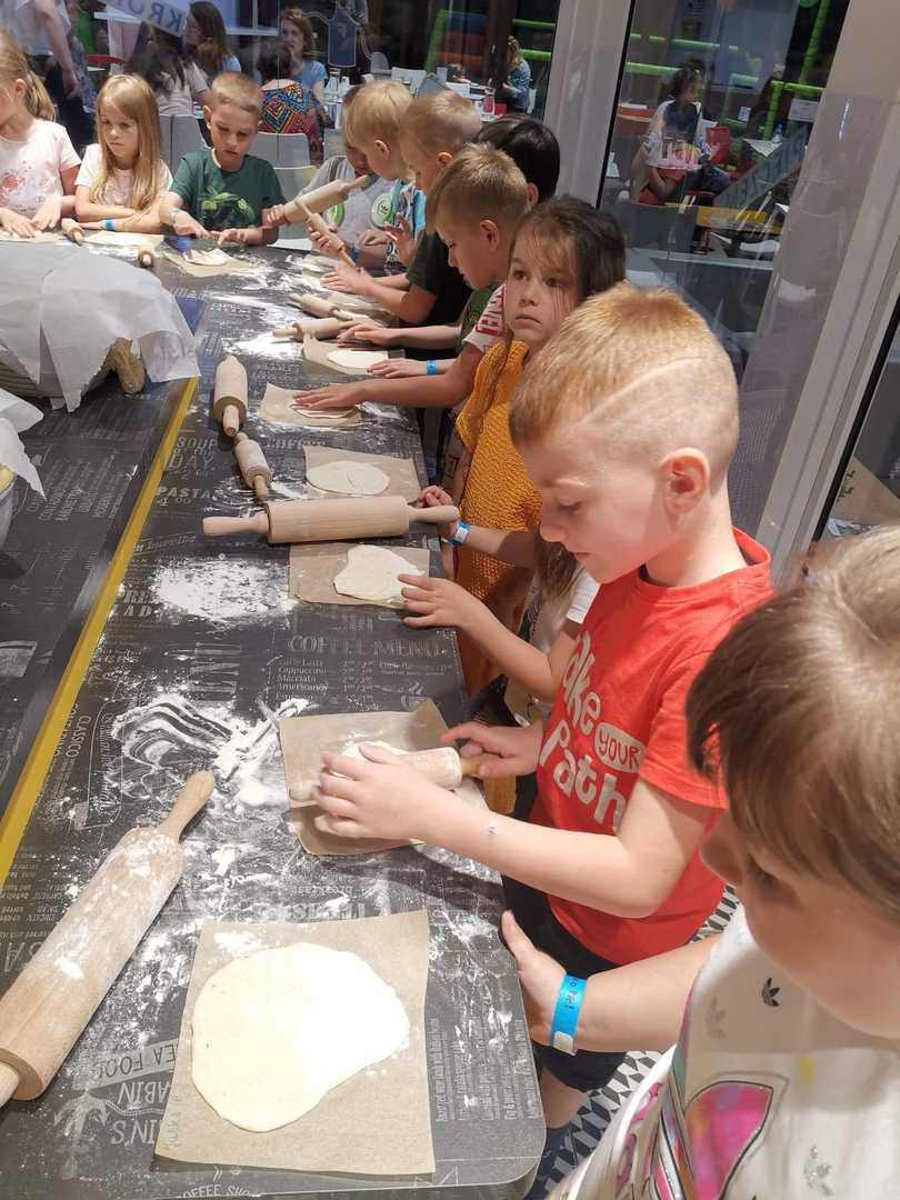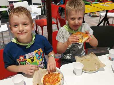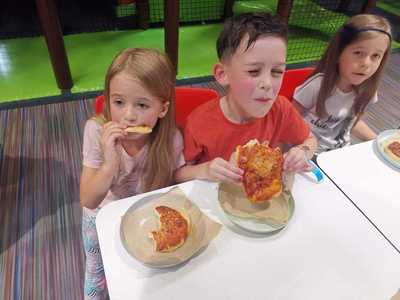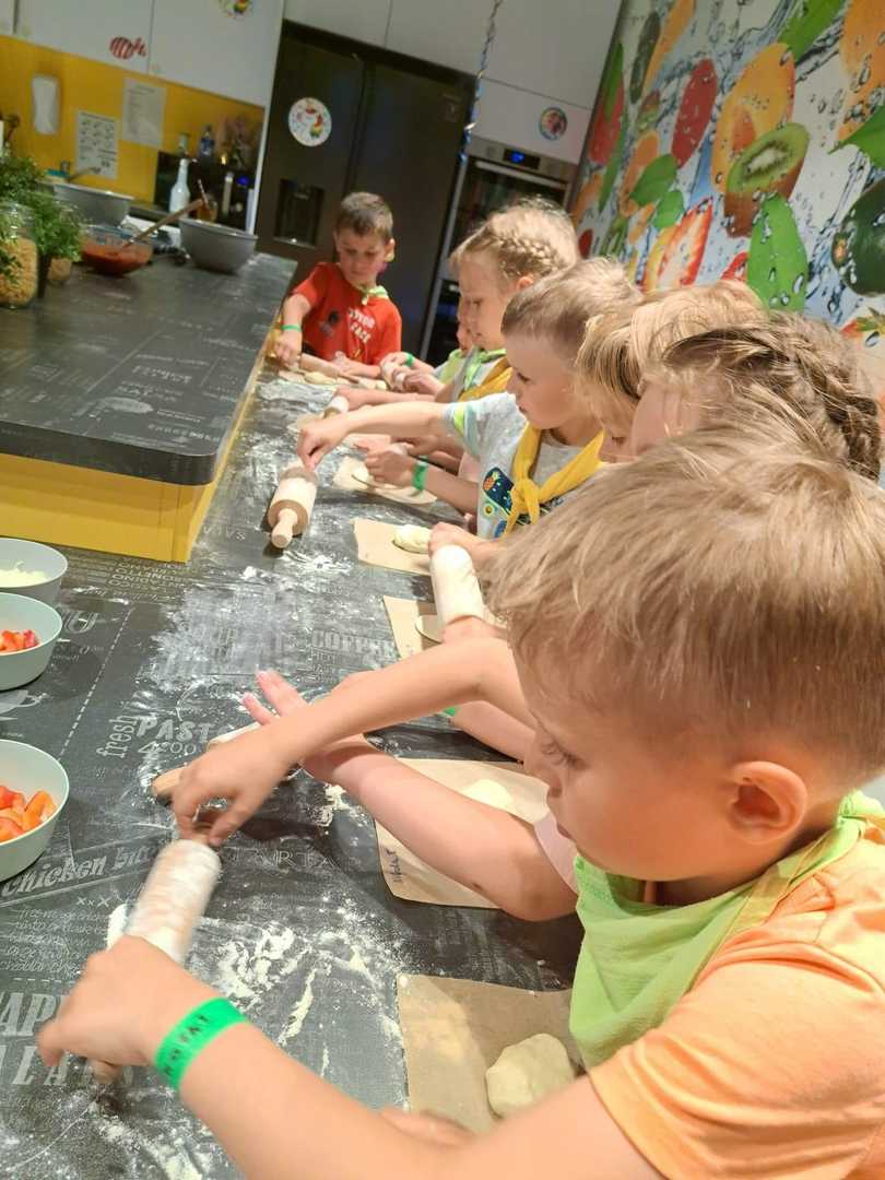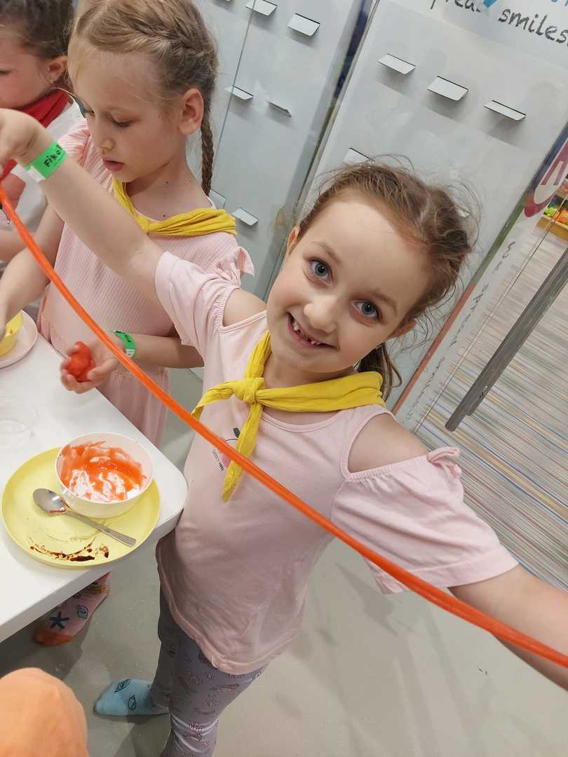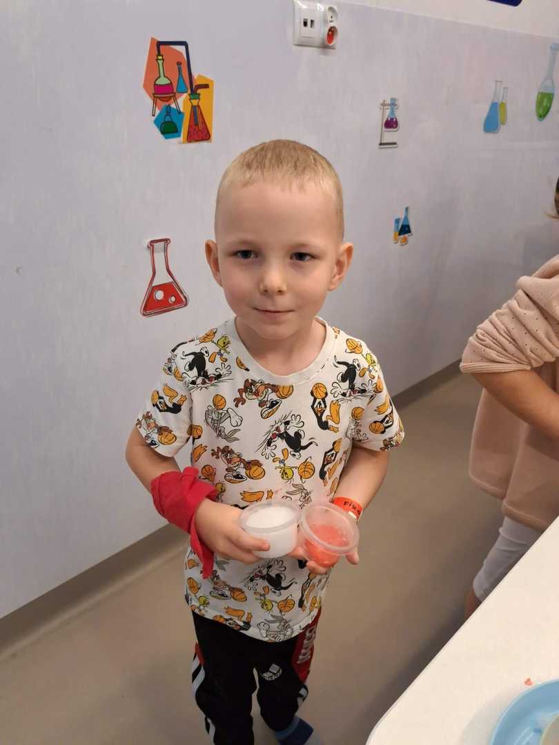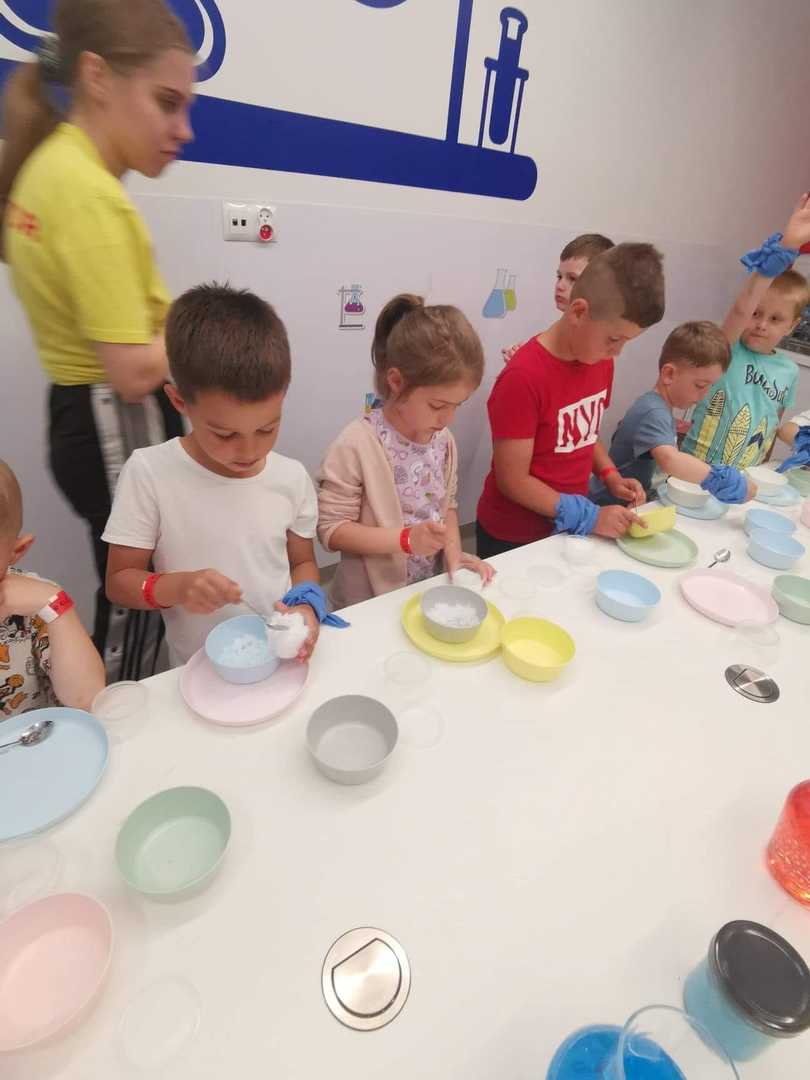 Tak uroczysty dzień uczciliśmy jeszcze wycieczką. Wszystkie trzy grupy udały się do sali zabaw Fikołki w Jankach, gdzie czekały na ich warsztaty kulinarne (robienie pizzy), warsztaty chemiczne oraz zabawy na konstrukcjach w sali. Uśmiechy nie schodziły z twarzy, a zabawy nie było końca