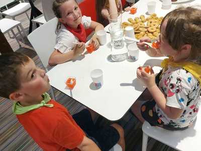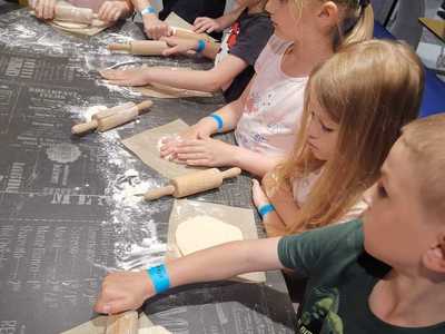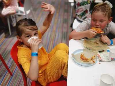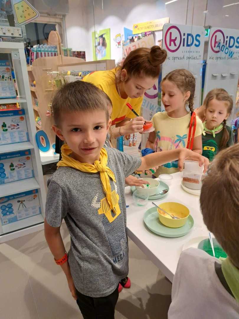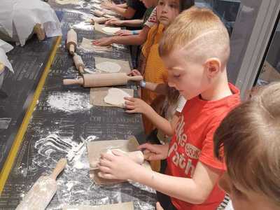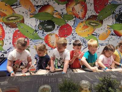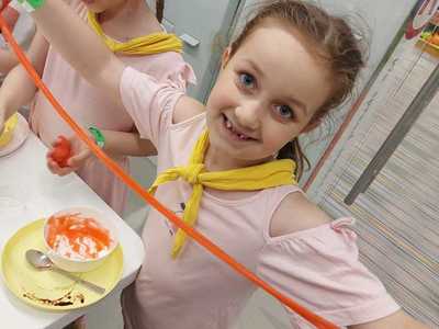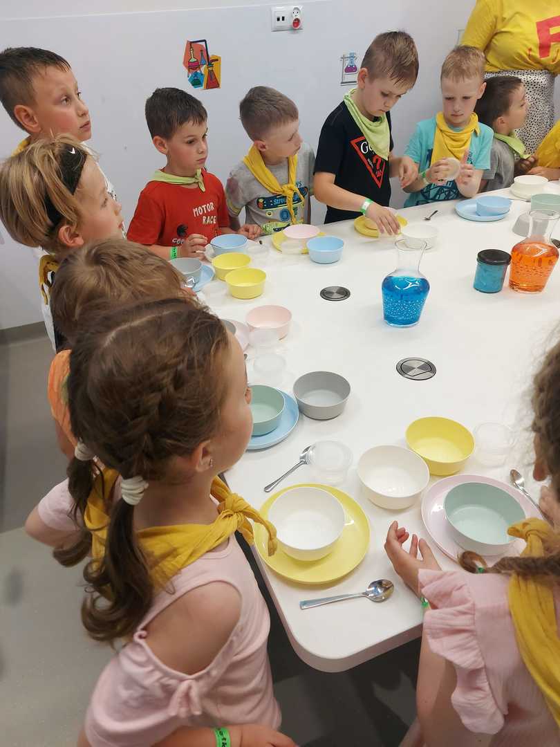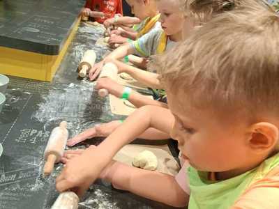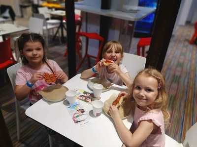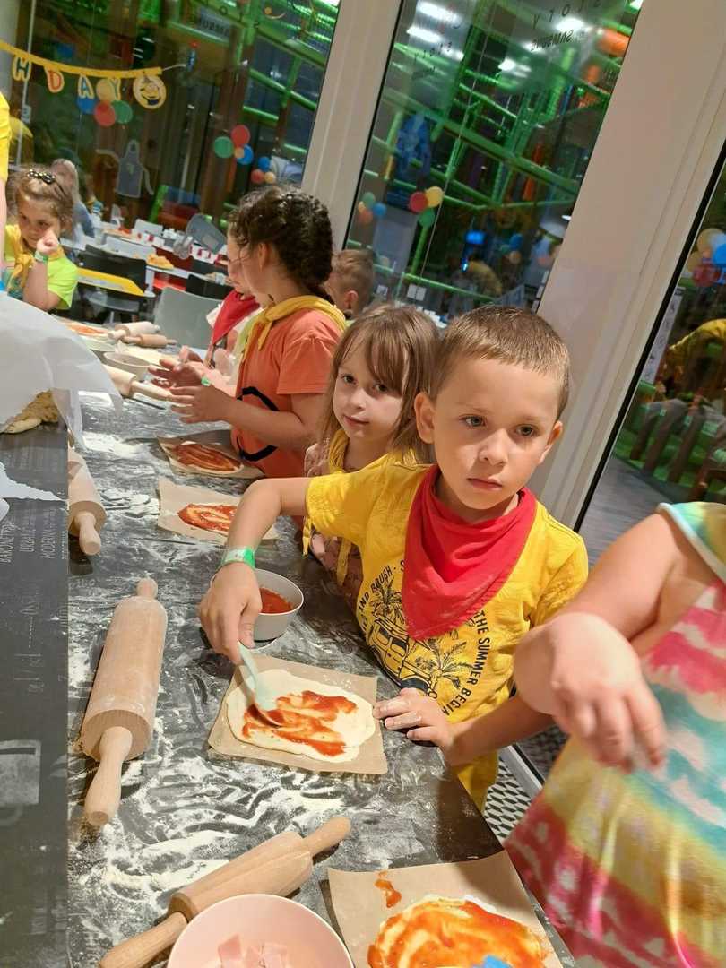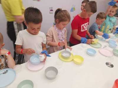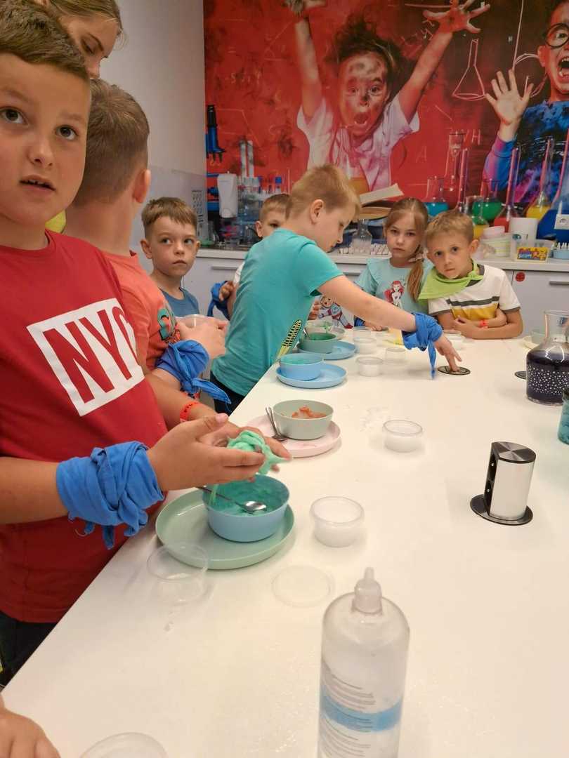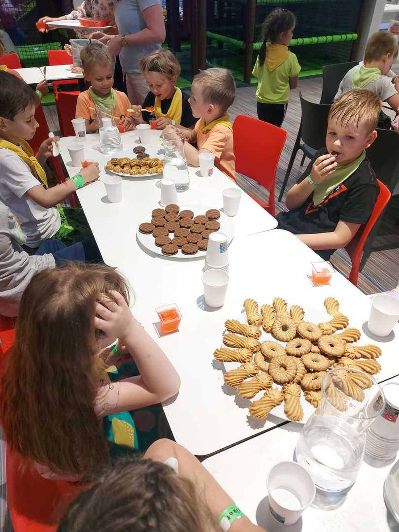 Tak uroczysty dzień uczciliśmy jeszcze wycieczką. Wszystkie trzy grupy udały się do sali zabaw Fikołki w Jankach, gdzie czekały na ich warsztaty kulinarne (robienie pizzy), warsztaty chemiczne oraz zabawy na konstrukcjach w sali. Uśmiechy nie schodziły z twarzy, a zabawy nie było końca