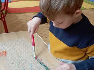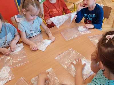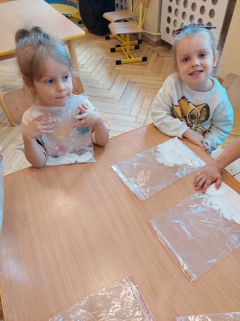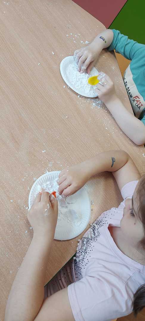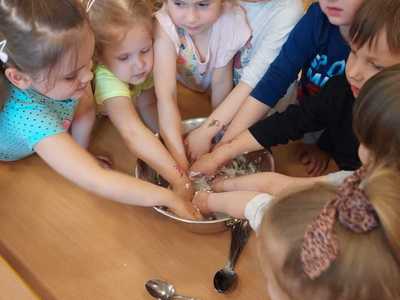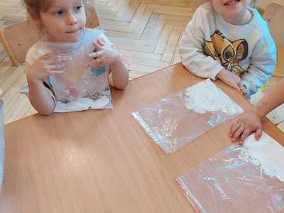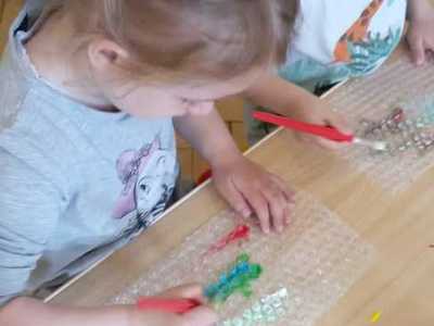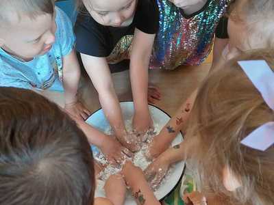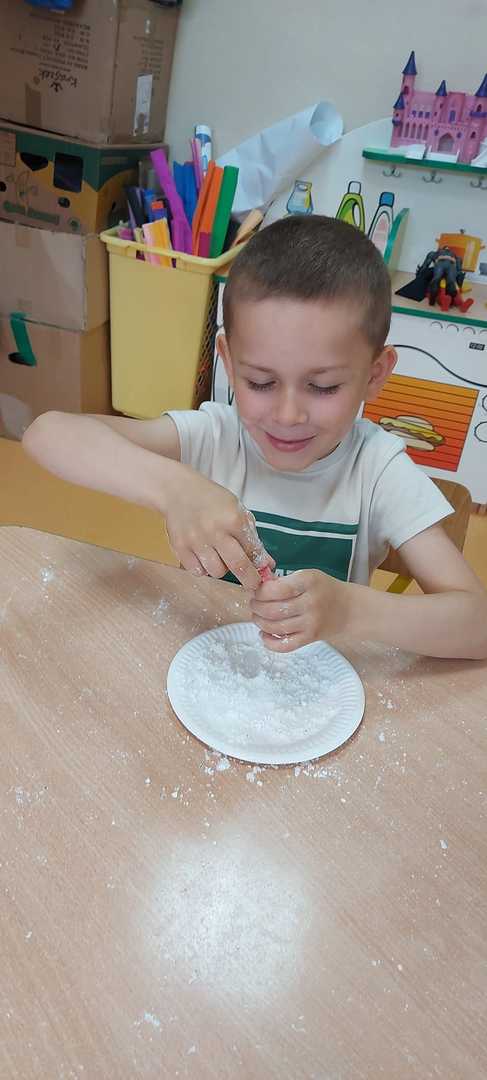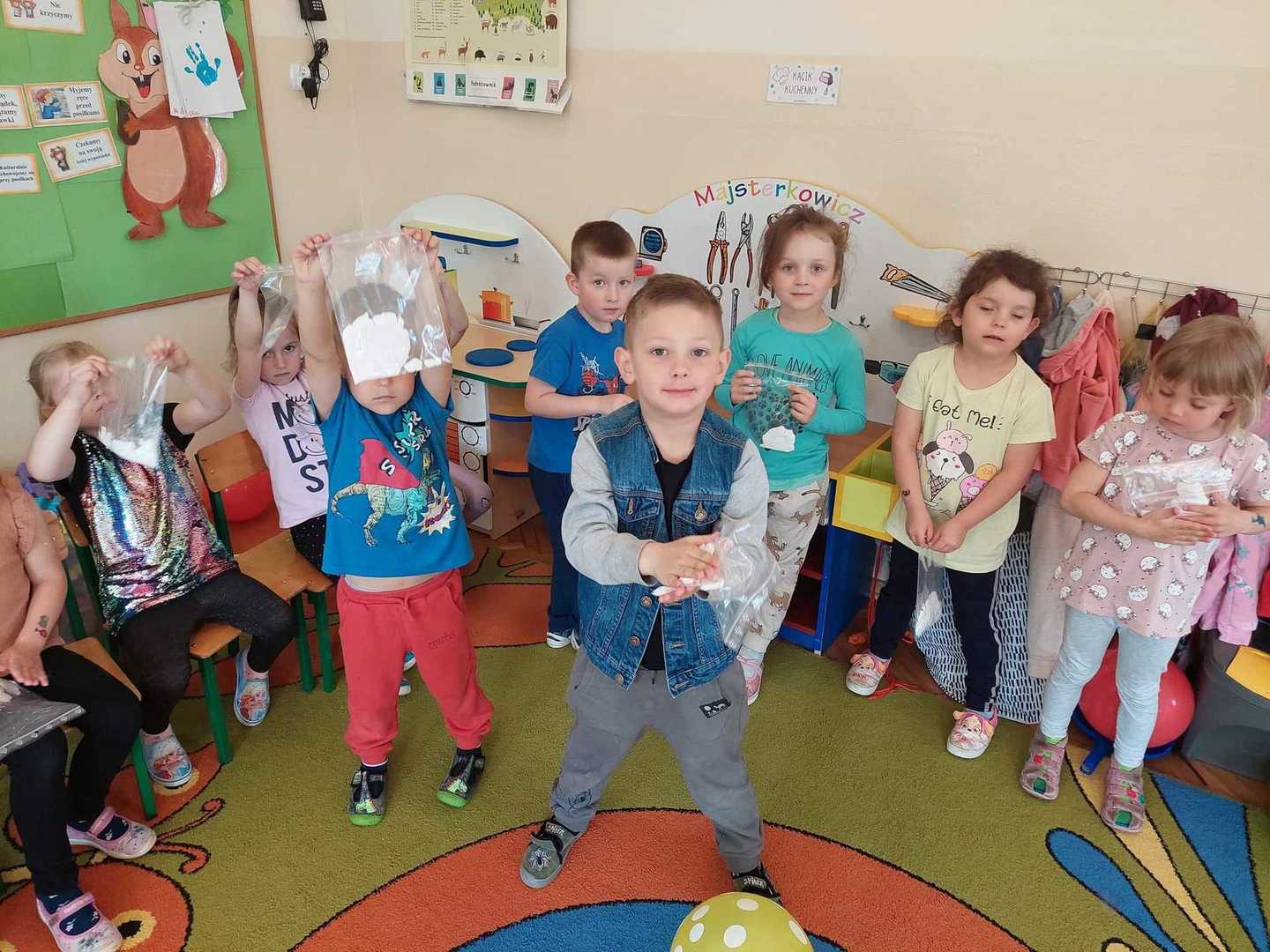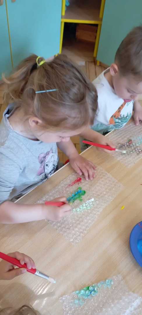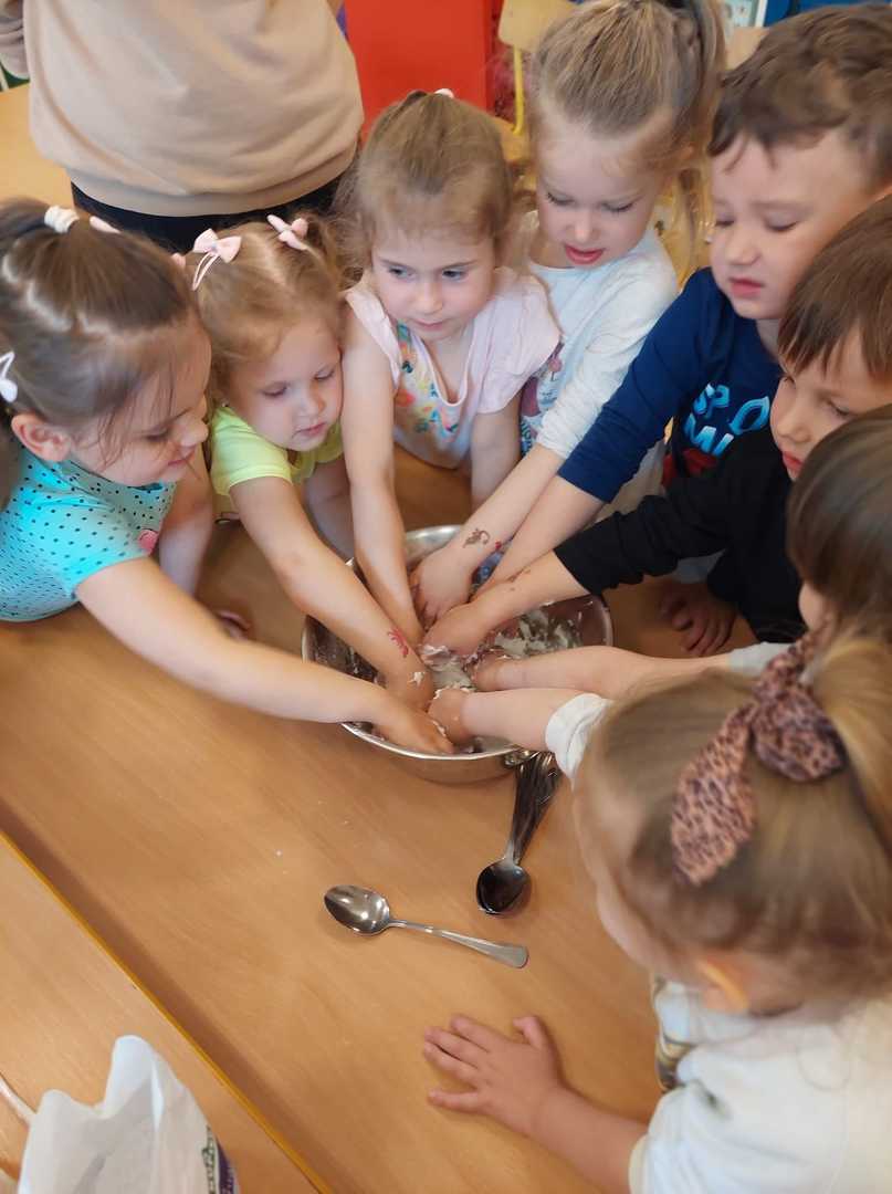 Dzieci bawiły się różnymi masami plastycznymi, tworzyły gniotki, biżuterię, jadły watę cukrową, bawiły się przy muzyce w sali, malowali buziaki, a jak pogoda pozwoliła malowali farbami na placu przedszkolnym i wiele innych