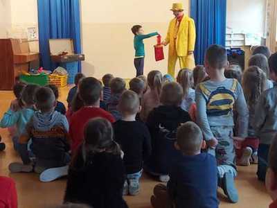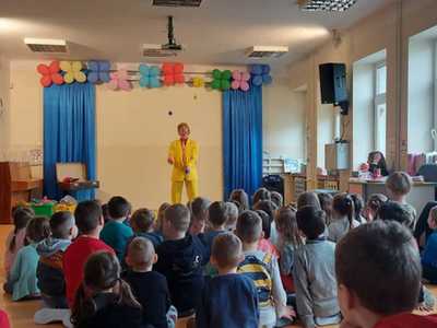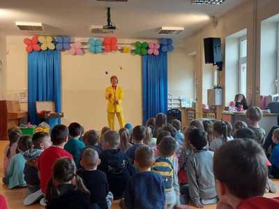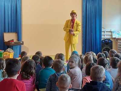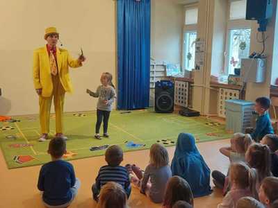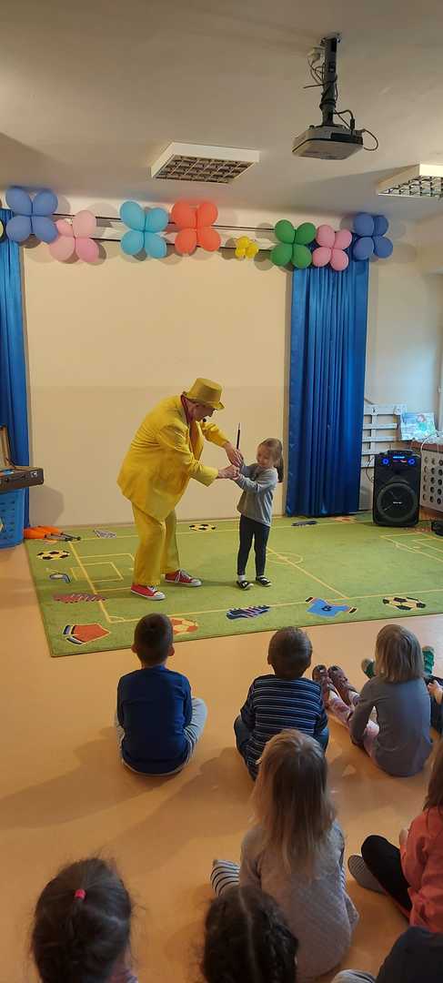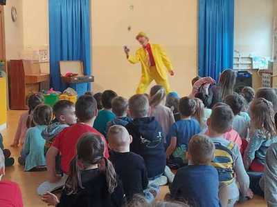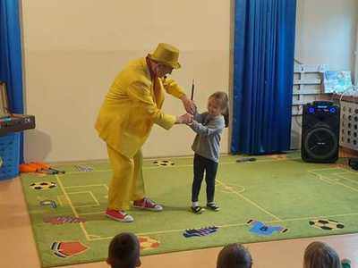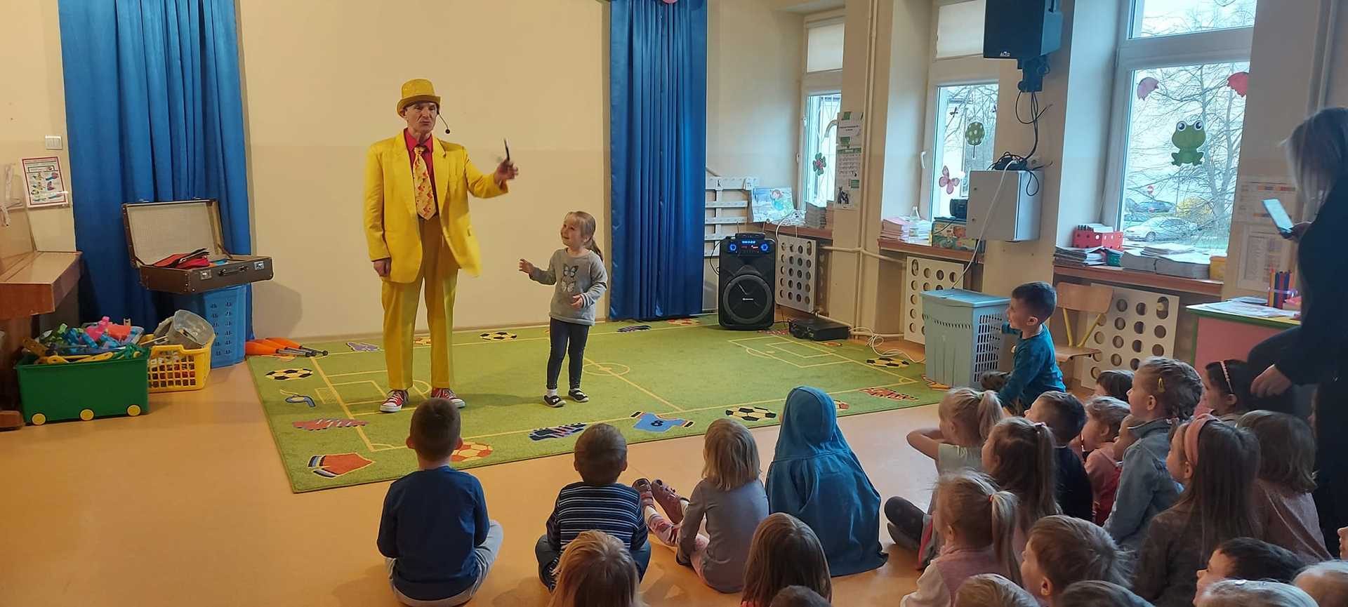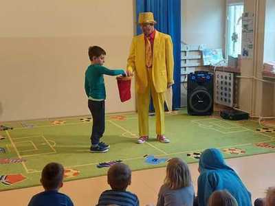 Gościliśmy dzisiaj w przedszkolu komika p. Piotra Boruta Dziękujemy za świetny występ, pełen żartów, piosenek i pokazów sztuczek magicznych