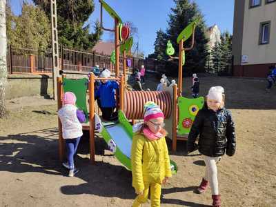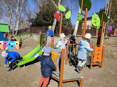 Pogoda nam sprzyja do korzystania z nowych sprzętów, przedszkolaki są bardzo zadowolone, a my im życzymy udanej zabawy