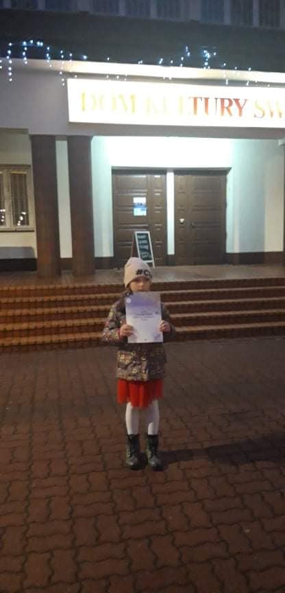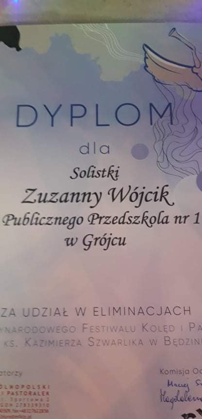 , która otrzymała dyplom za udział w eliminacjach w 28 Międzynarodowym Festiwalu Kolęd i Pastorałek