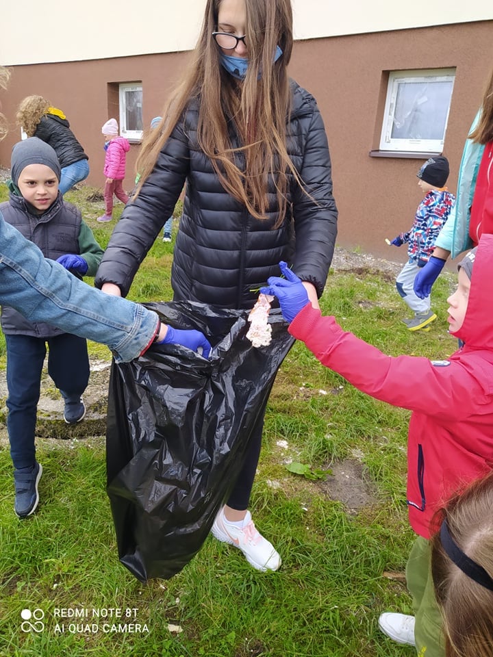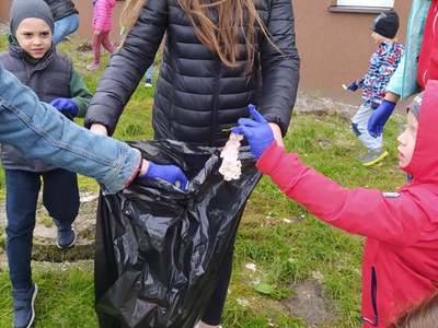 Dziś pogoda była przyjaźniejsza, pomimo panującego chłodu, nie padało. Dzielne przedszkolaki z grup 6 latków w asyście wolontariuszy z Zespołu Szkół im. Armii Krajowej Obwodu Głuszec-Grójec w Grójcu wzięły udział w akcji "Sprzątania Świata".