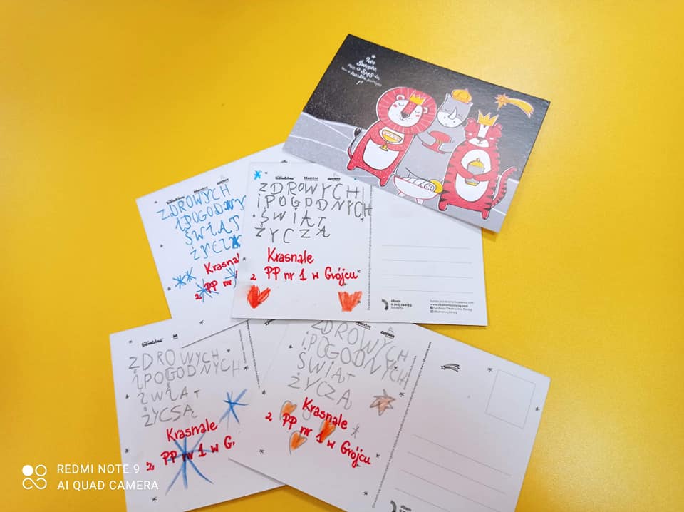 Nasze Przedszkole po raz drugi wzięło udział w kampanii społecznej "Idą święta, nie o SMS-ie, lecz o kartce pamiętaj". Dzieci z grup: Krasnale i Zające poznały tradycję wysyłania świątecznych kartek z życzeniami.