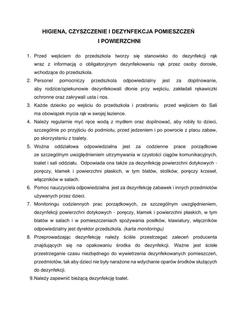 Procedury organizacji pracy i opieki.