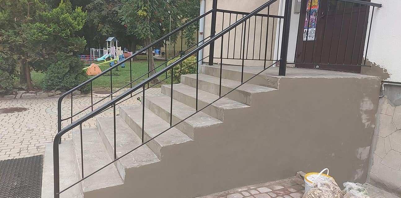 A to już budynek przy ul.Laskowej i nowe schody. Bezpieczne i wyprofilowane zgodnie z normami. Dzieci śmigają po nich bezpiecznie.
