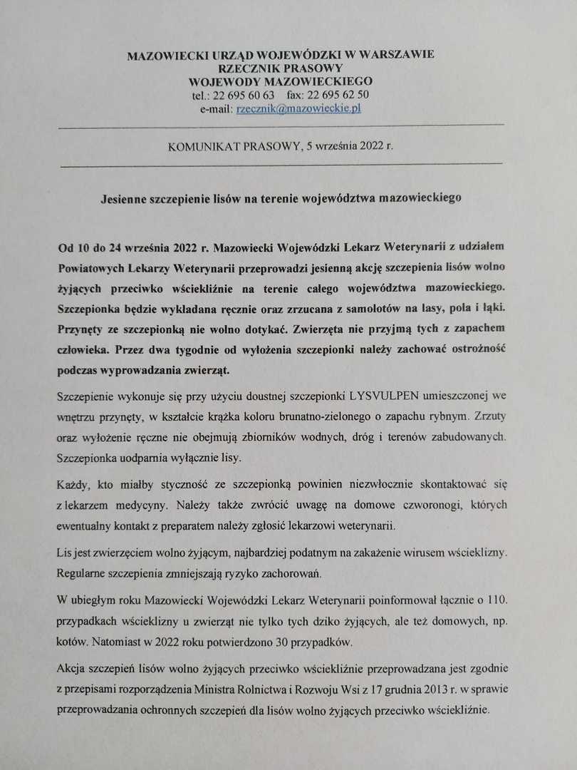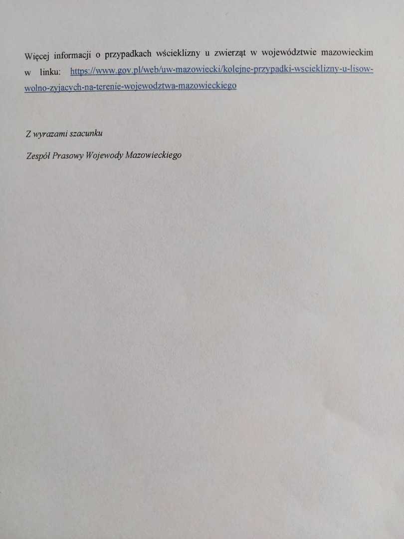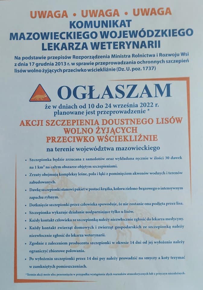 ❗Uwaga ⬇️ Komunikat Mazowieckiego Wojewódzkiego Lekarza Weterynarii ⬇️