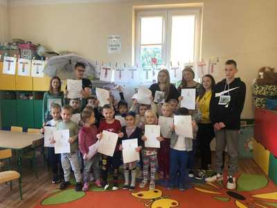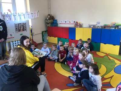Fotorelacja z wizyty uczniów Zespołu Szkół im. Armii Krajowej Obwodu "Głuszec", którzy spędzili z naszymi przedszkolakami miło czas na wspólnym czytaniu bajek.