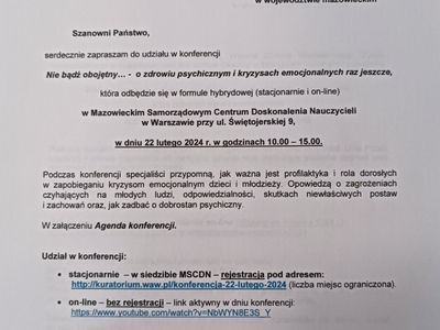 Serdecznie zapraszamy do udziału w konferencji " Nie bądź obojętny...-...